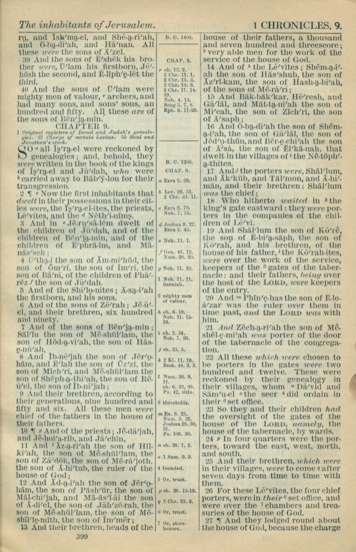 1916年Holy Bible 历代志上 8 章 39 节到 9 章 27 节