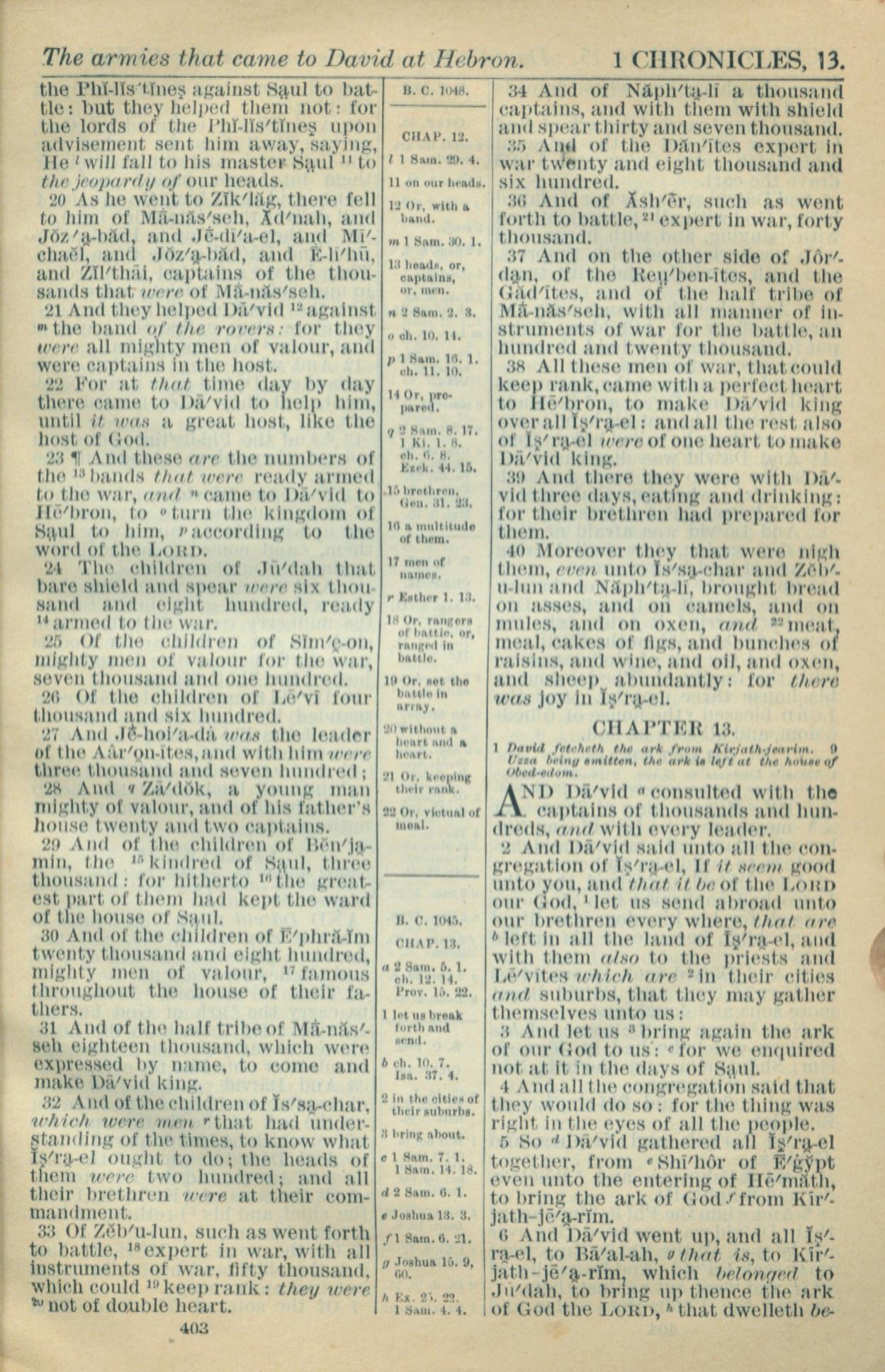 1916年Holy Bible 历代志上 12 章 20 节到 13 章 6 节