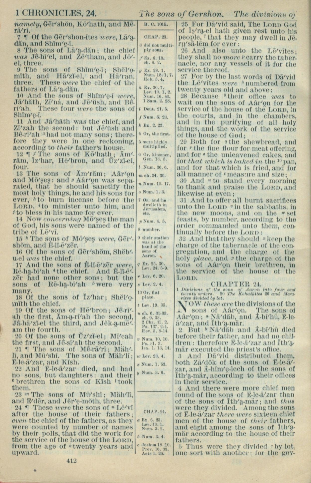 1916年Holy Bible 历代志上 23 章 7 节到 24 章 5 节
