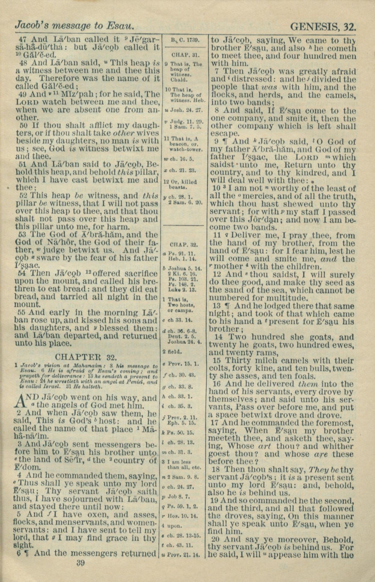 1916年Holy Bible 创世记 31 章 47 节到 32 章 20 节