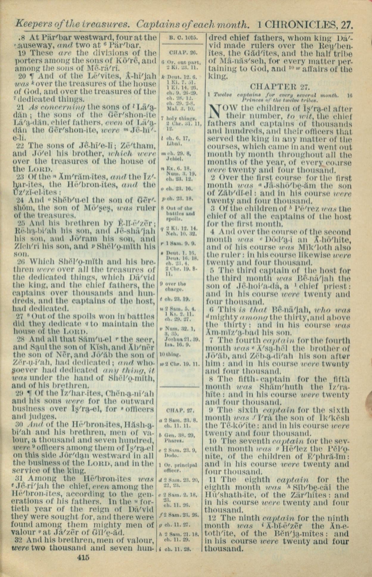 1916年Holy Bible 历代志上 26 章 18 节到 27 章 12 节