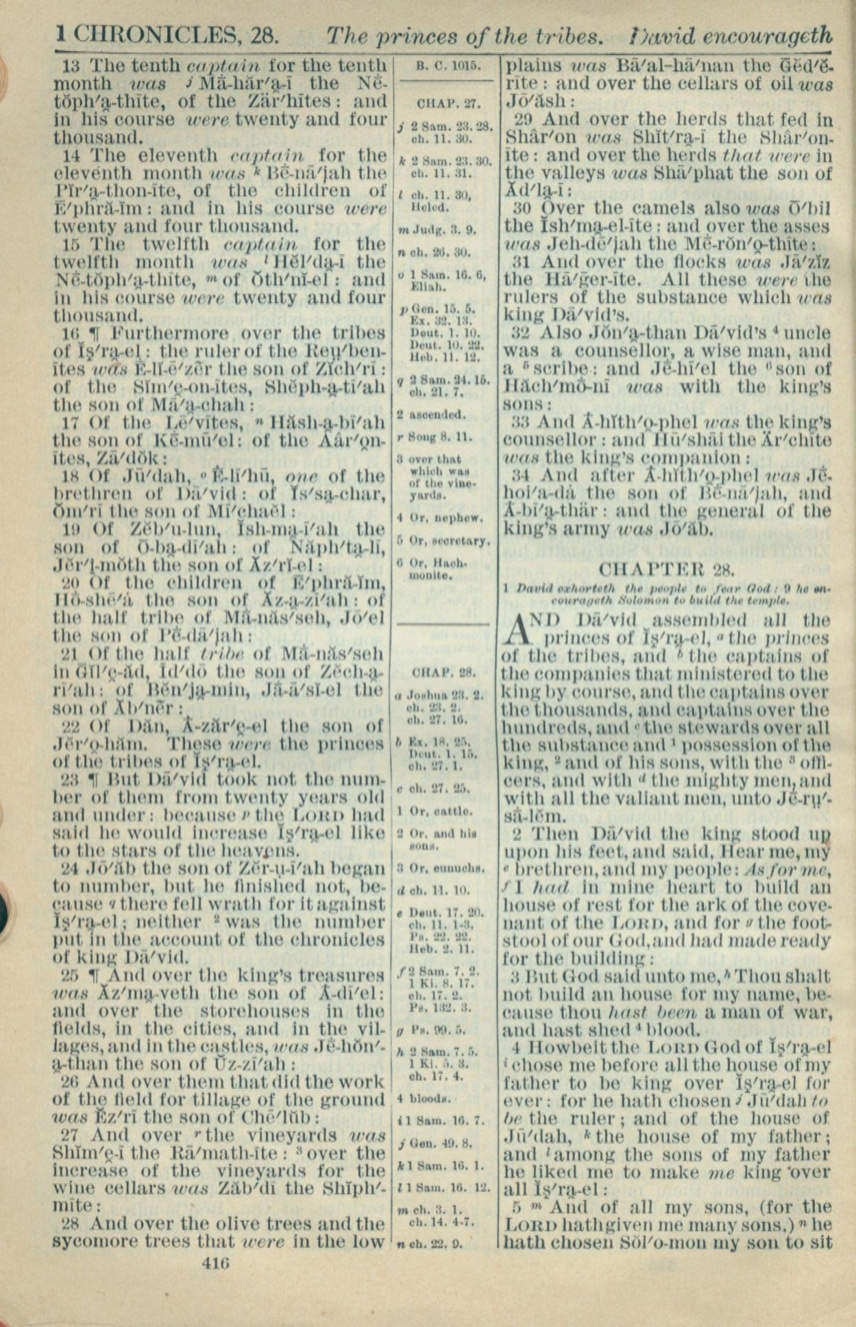 1916年Holy Bible 历代志上 27 章 13 节到 28 章 5 节
