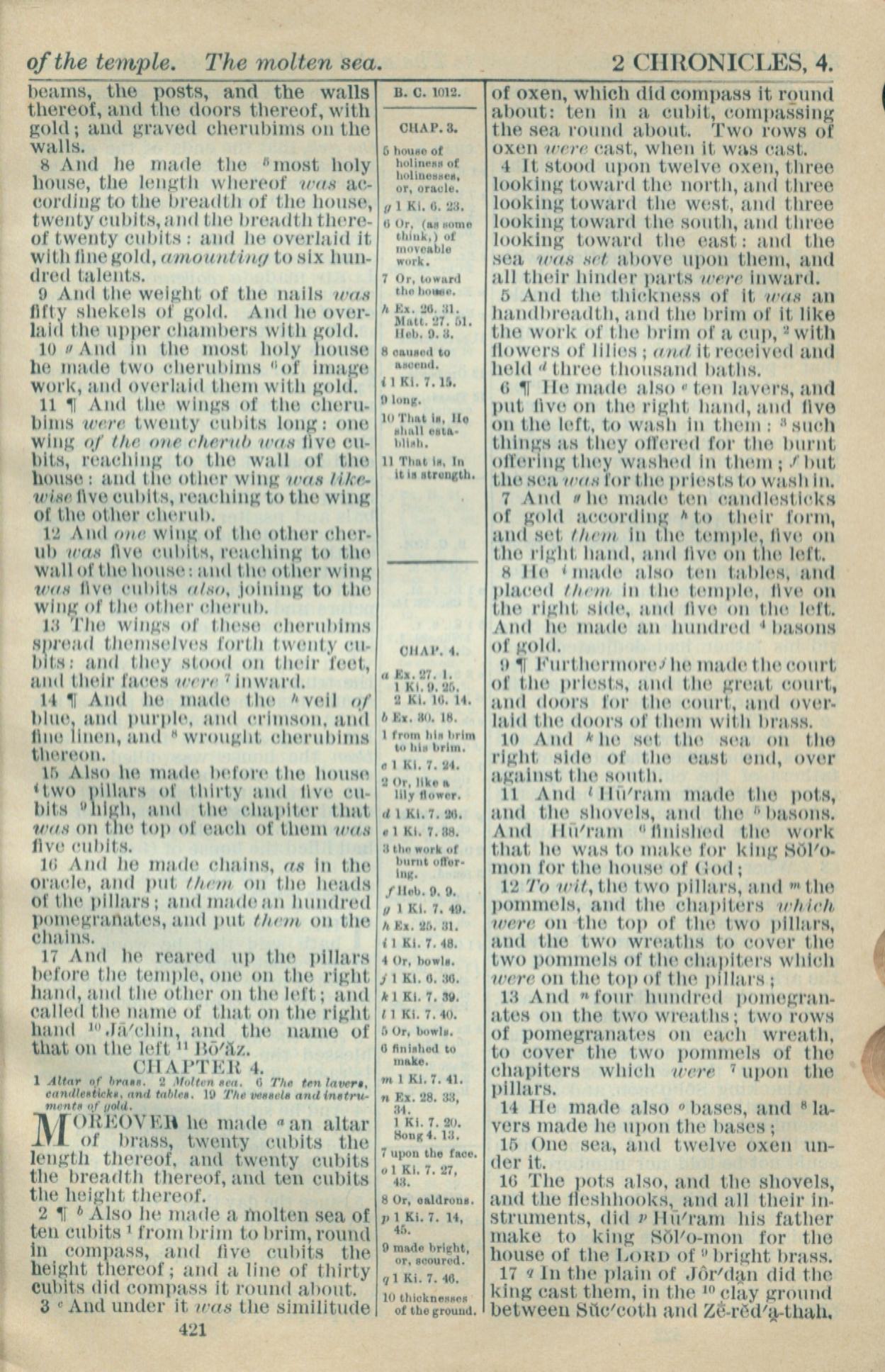 1916年Holy Bible 历代志下 3 章 8 节到 4 章 17 节