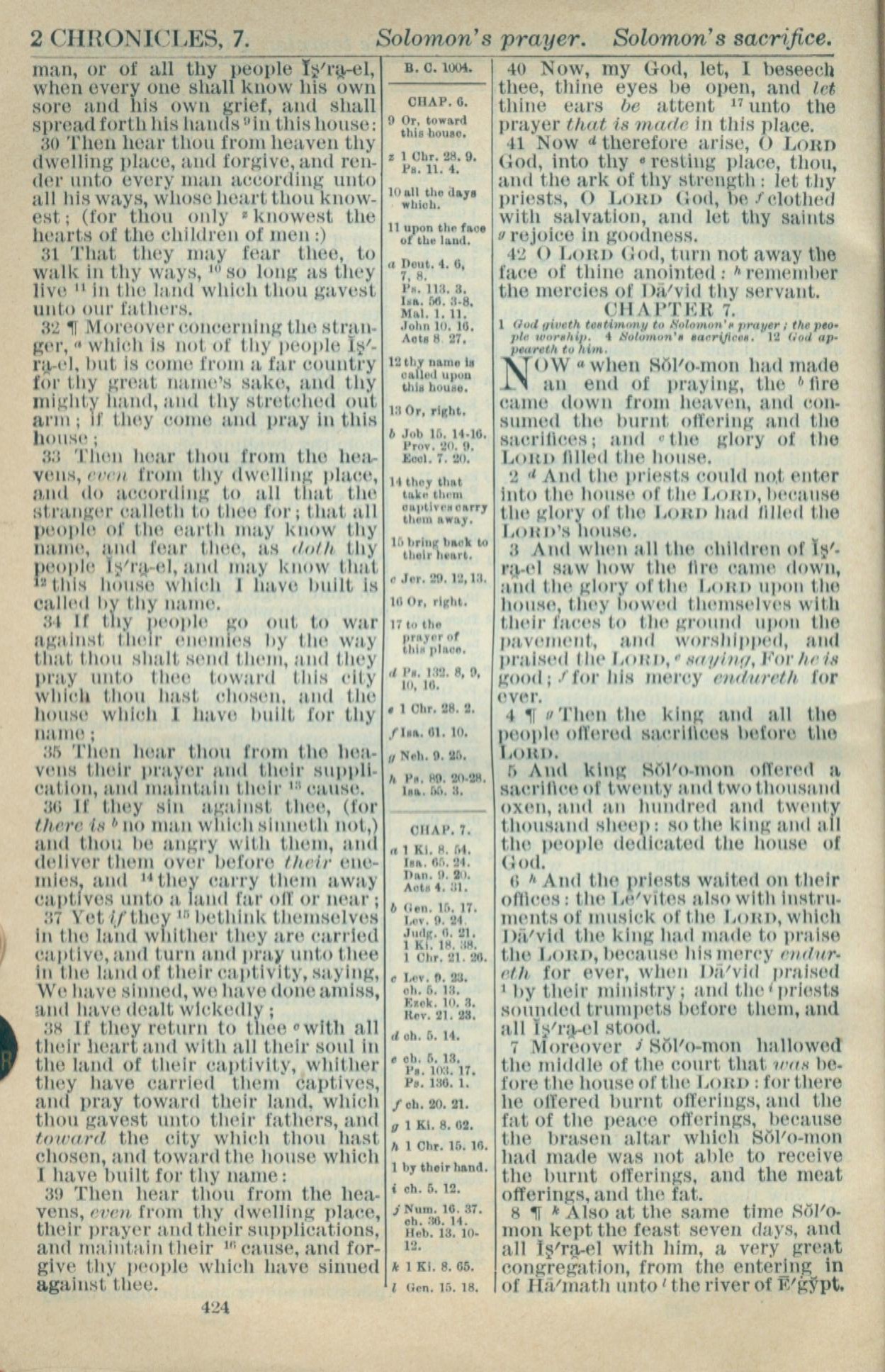 1916年Holy Bible 历代志下 6 章 30 节到 7 章 8 节