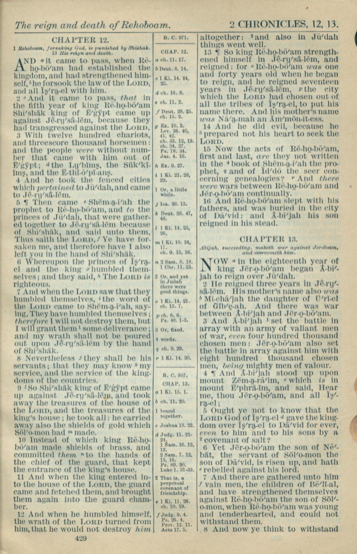 1916年Holy Bible 历代志下 12 章 1 节到 13 章 8 节
