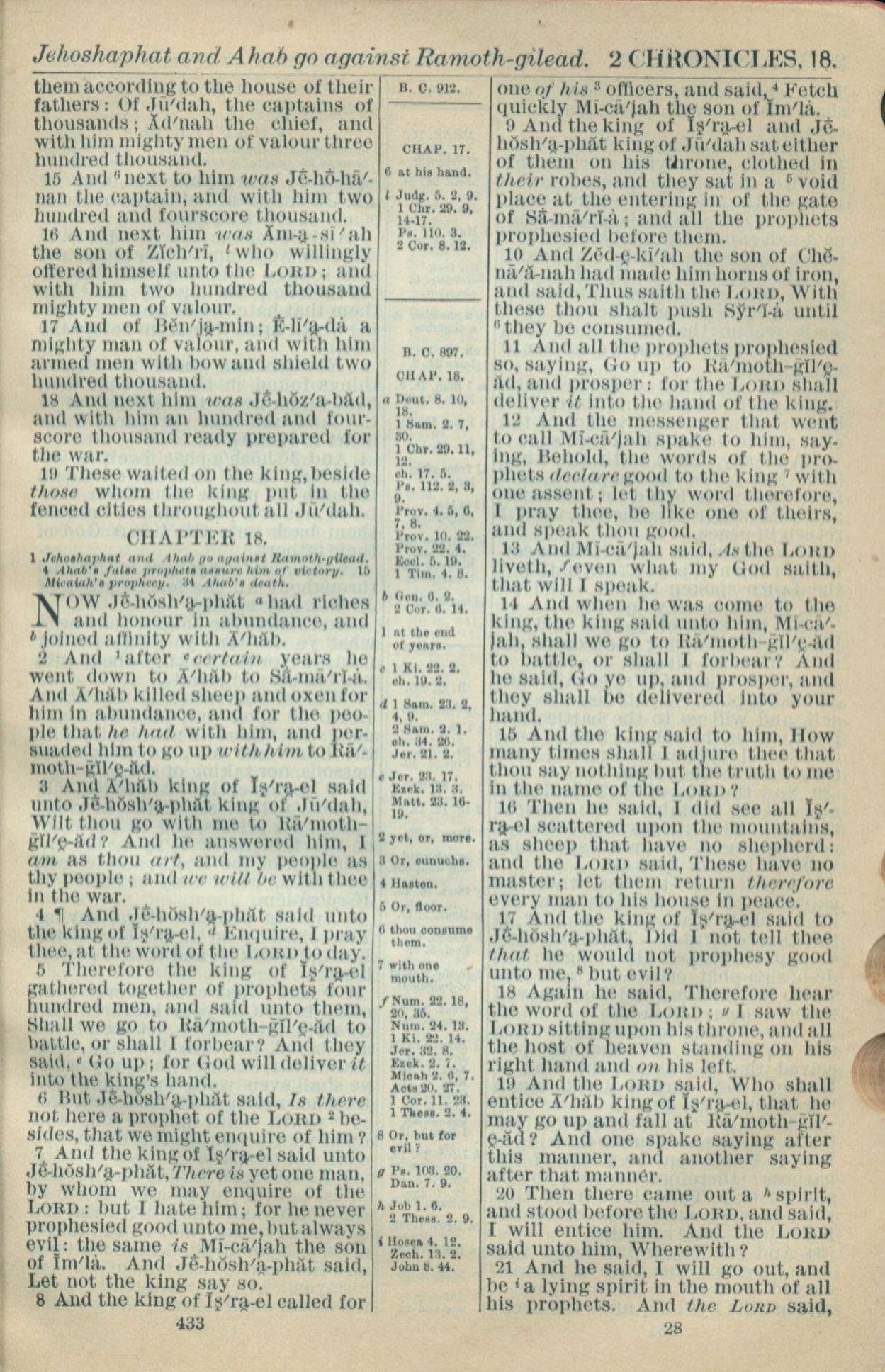 1916年Holy Bible 历代志下 17 章 15 节到 18 章 21 节