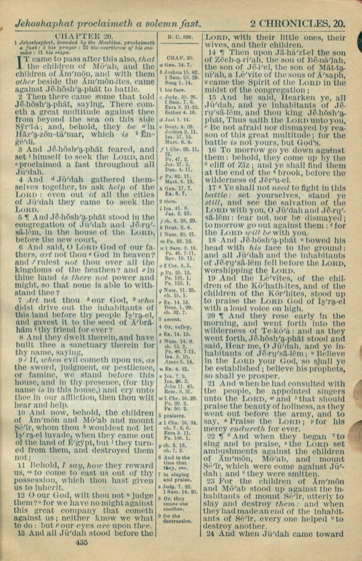 1916年Holy Bible 历代志下 20 章 1 节到 20 章 24 节