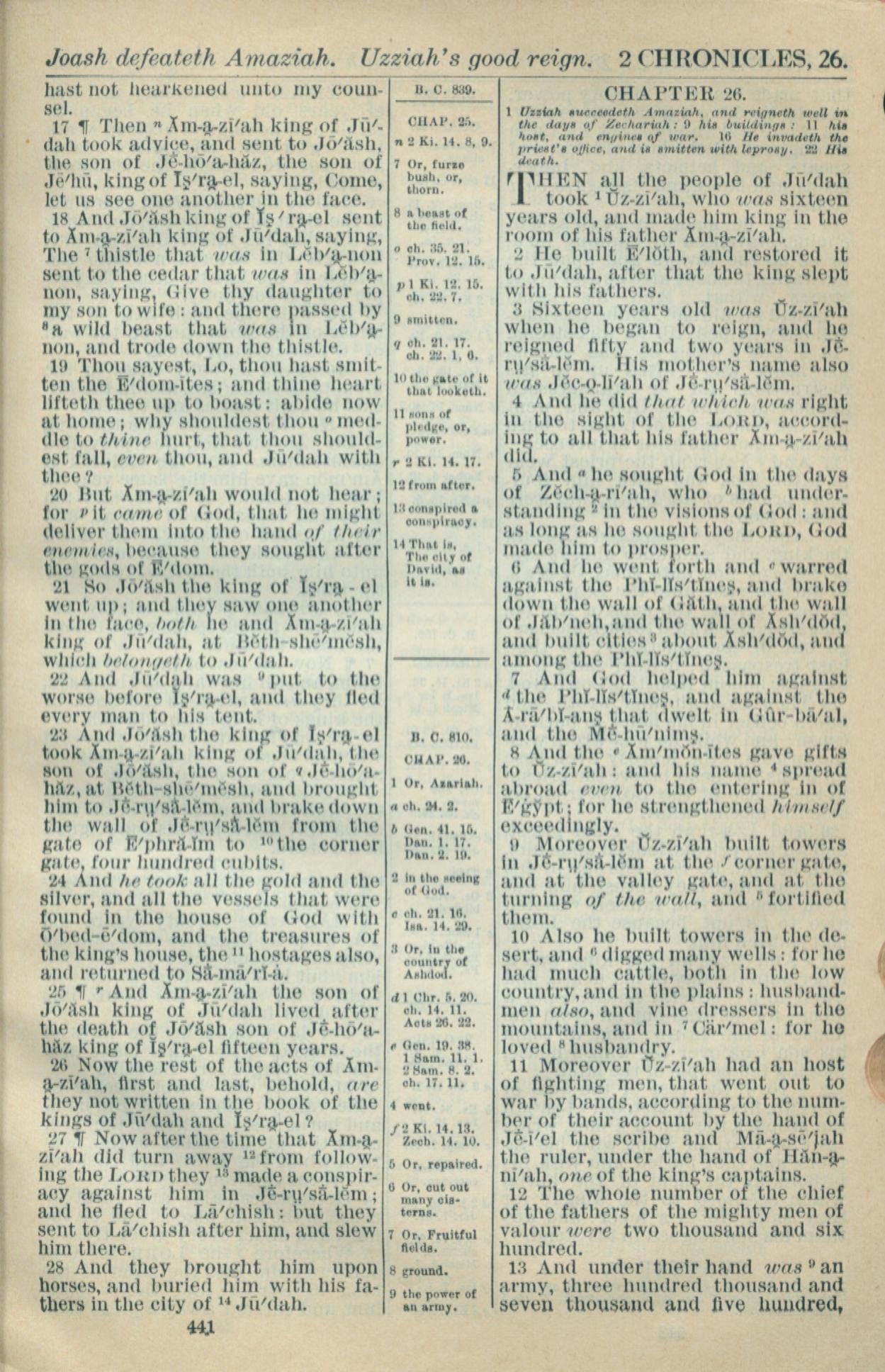 1916年Holy Bible 历代志下 25 章 17 节到 26 章 13 节