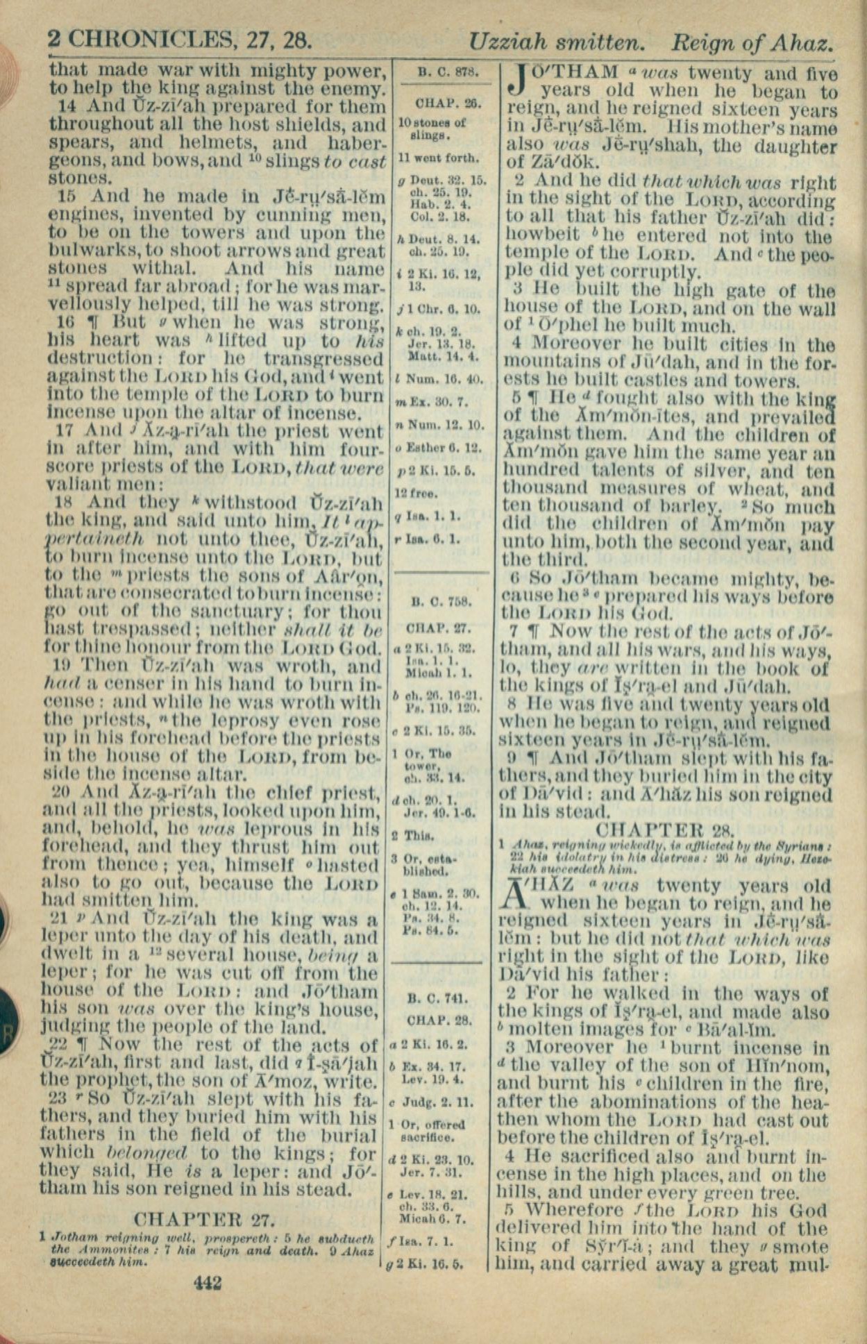 1916年Holy Bible 历代志下 26 章 14 节到 28 章 5 节