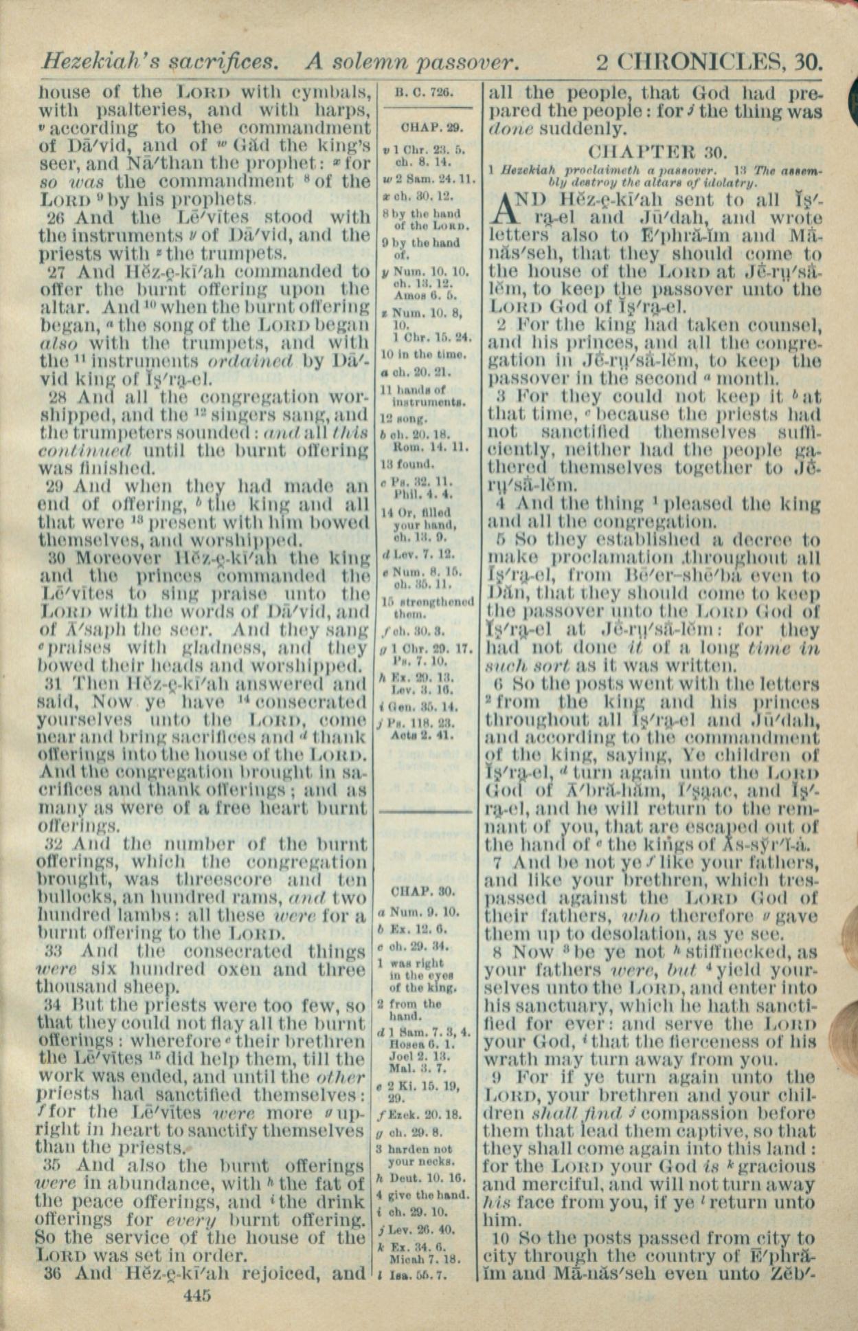 1916年Holy Bible 历代志下 29 章 26 节到 30 章 10 节