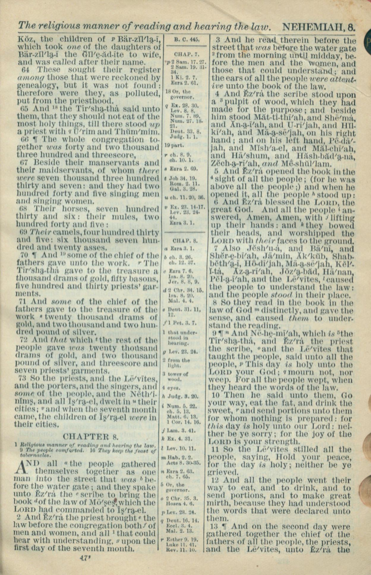 1916年Holy Bible 尼希米记 7 章 64 节到 8 章 13 节