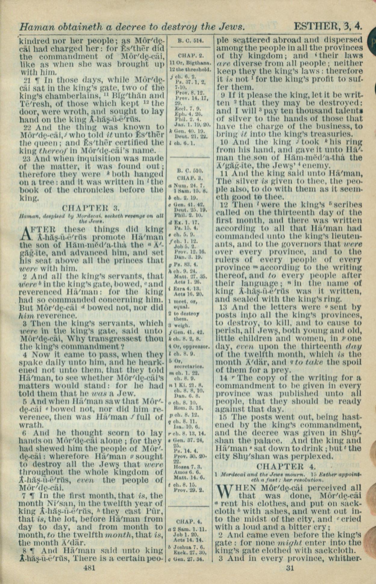 1916年Holy Bible 以斯帖记 2 章 21 节到 4 章 3 节