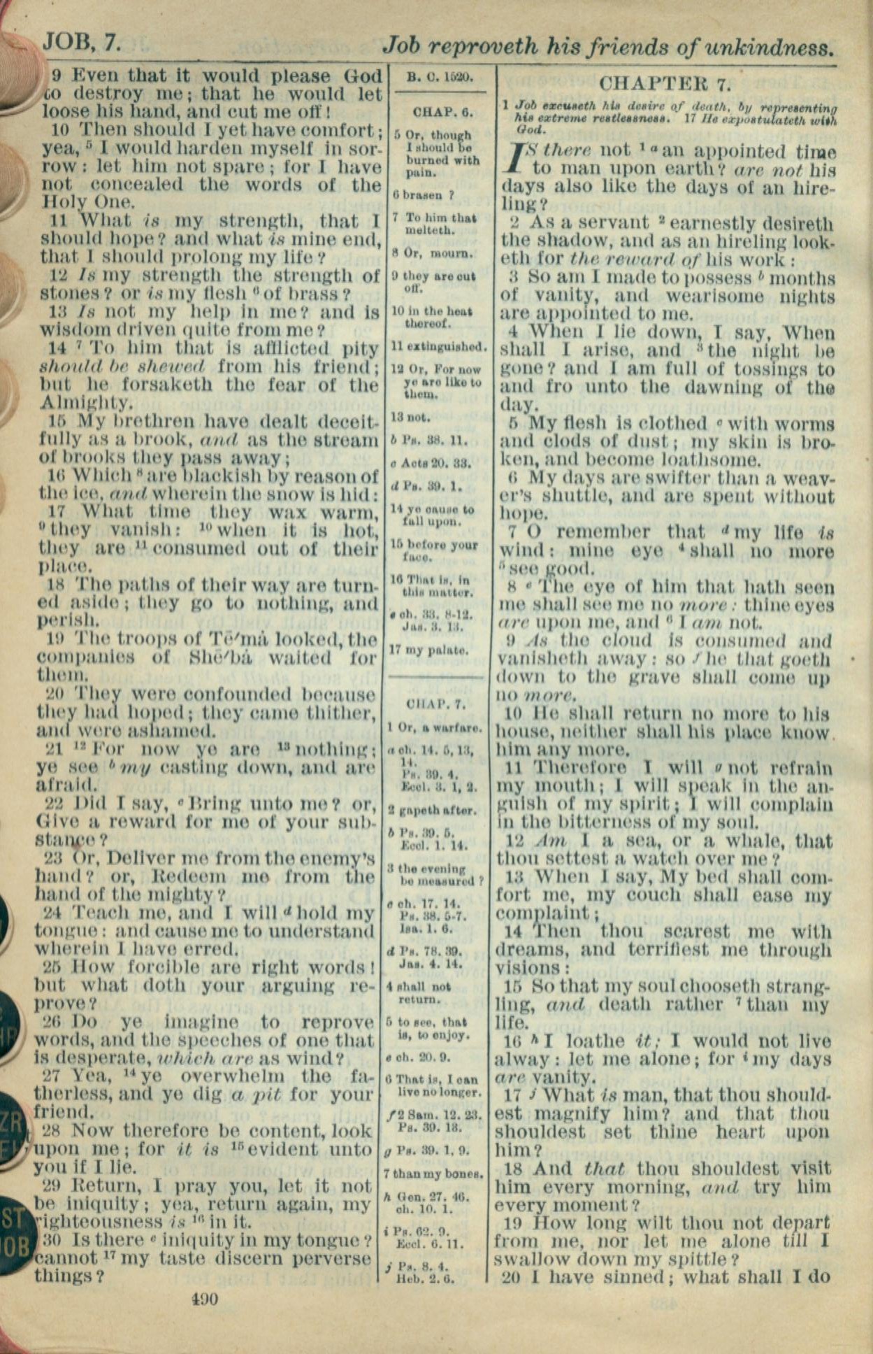 1916年Holy Bible 约伯记 6 章 9 节到 7 章 20 节