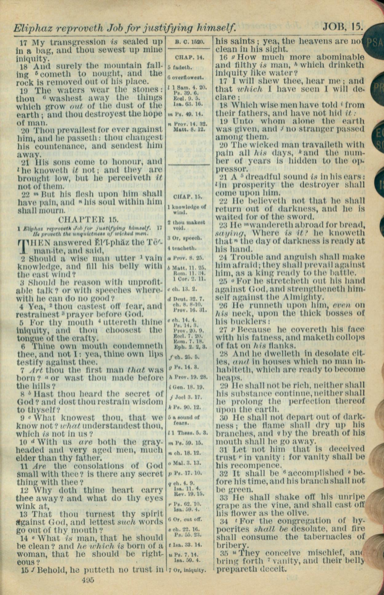1916年Holy Bible 约伯记 14 章 17 节到 15 章 35 节