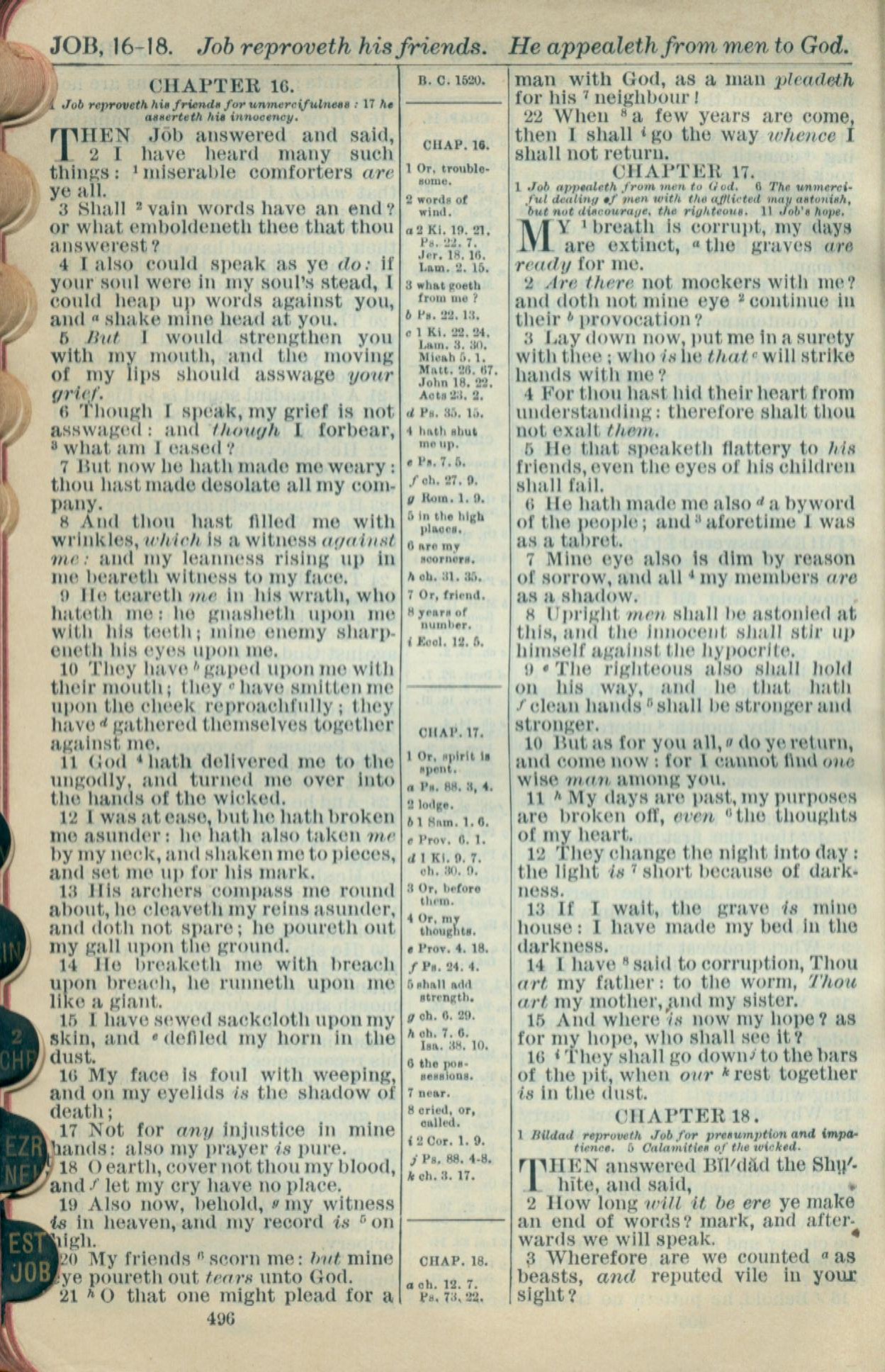 1916年Holy Bible 约伯记 16 章 1 节到 18 章 3 节