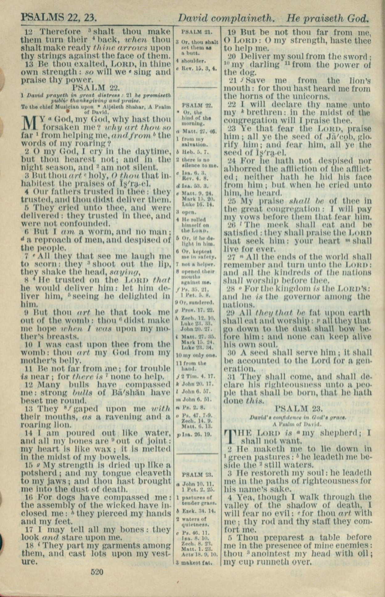 1916年Holy Bible 诗篇 21 章 12 节到 23 章 5 节