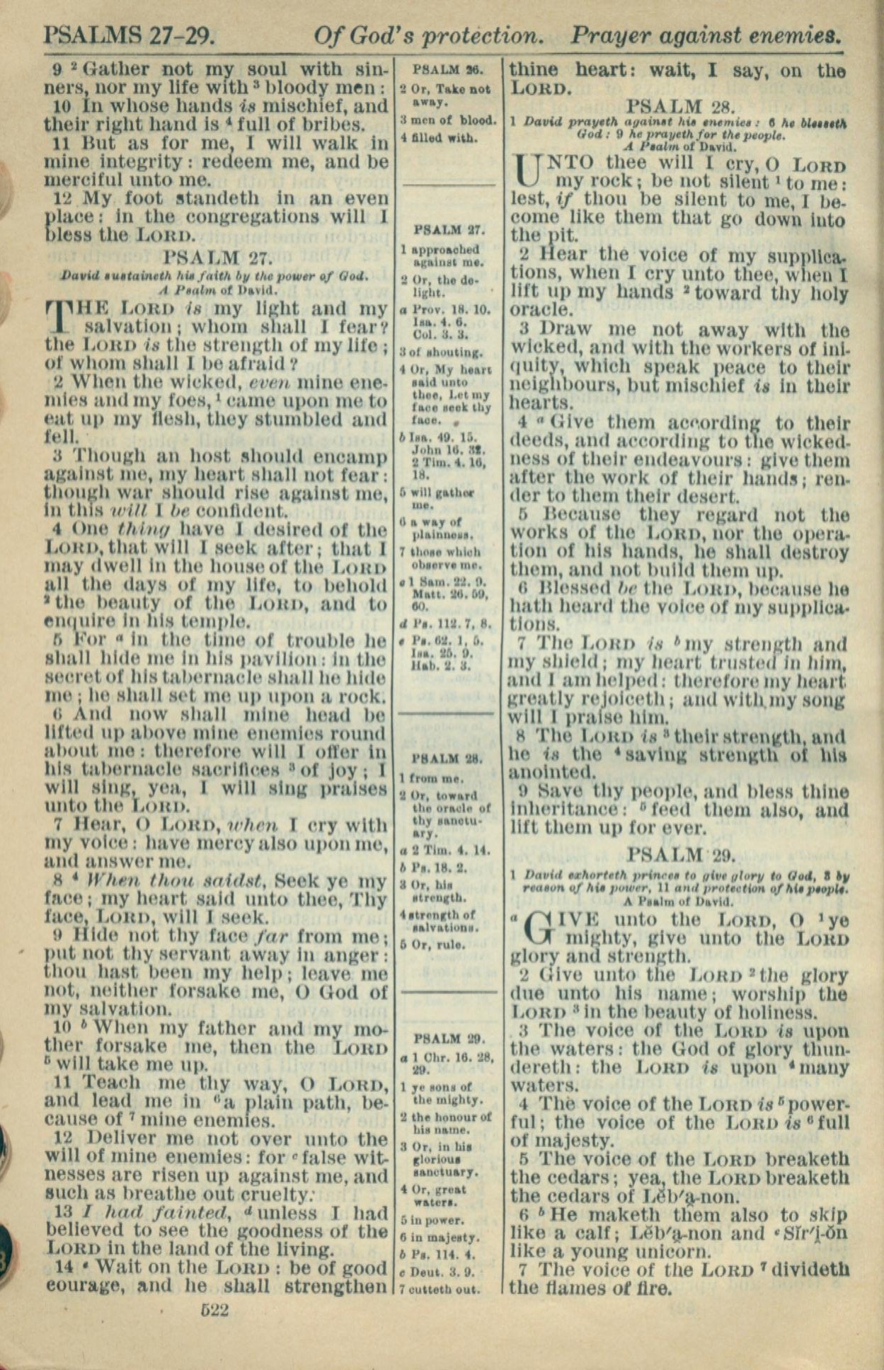 1916年Holy Bible 诗篇 26 章 9 节到 29 章 7 节