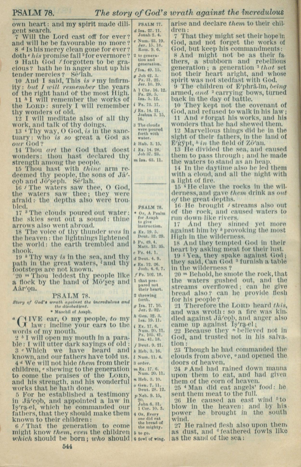 1916年Holy Bible 诗篇 77 章 7 节到 78 章 27 节