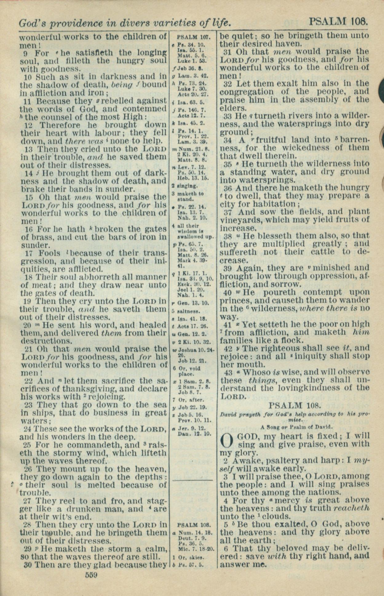 1916年Holy Bible 诗篇 107 章 9 节到 108 章 6 节