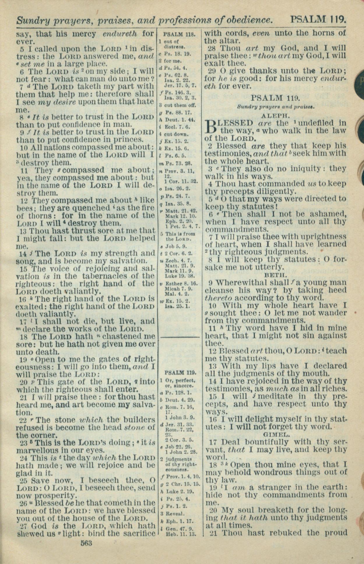 1916年Holy Bible 诗篇 118 章 5 节到 119 章 21 节