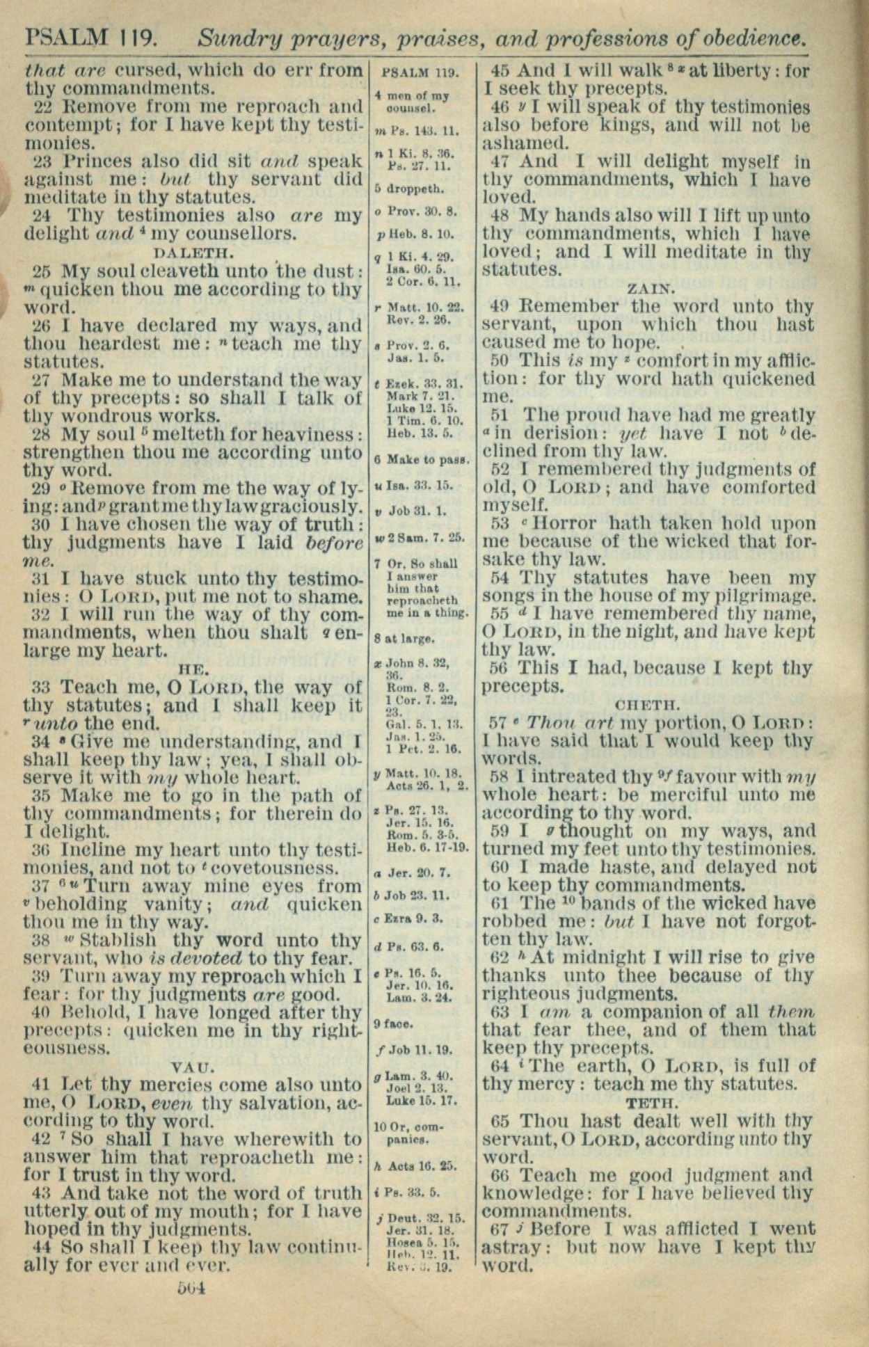 1916年Holy Bible 诗篇 119 章 22 节到 119 章 67 节