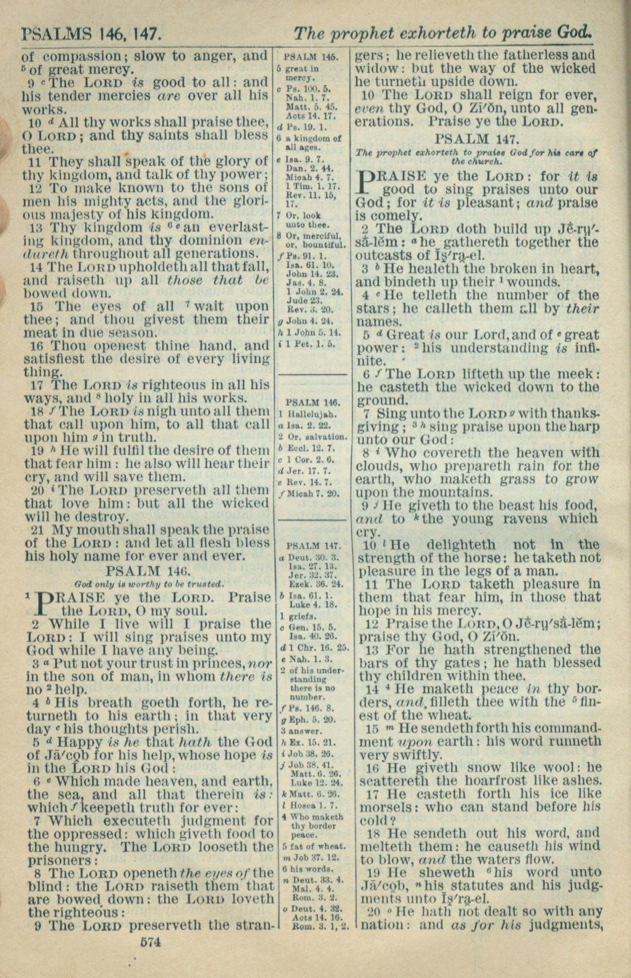 1916年Holy Bible 诗篇 145 章 9 节到 147 章 20 节