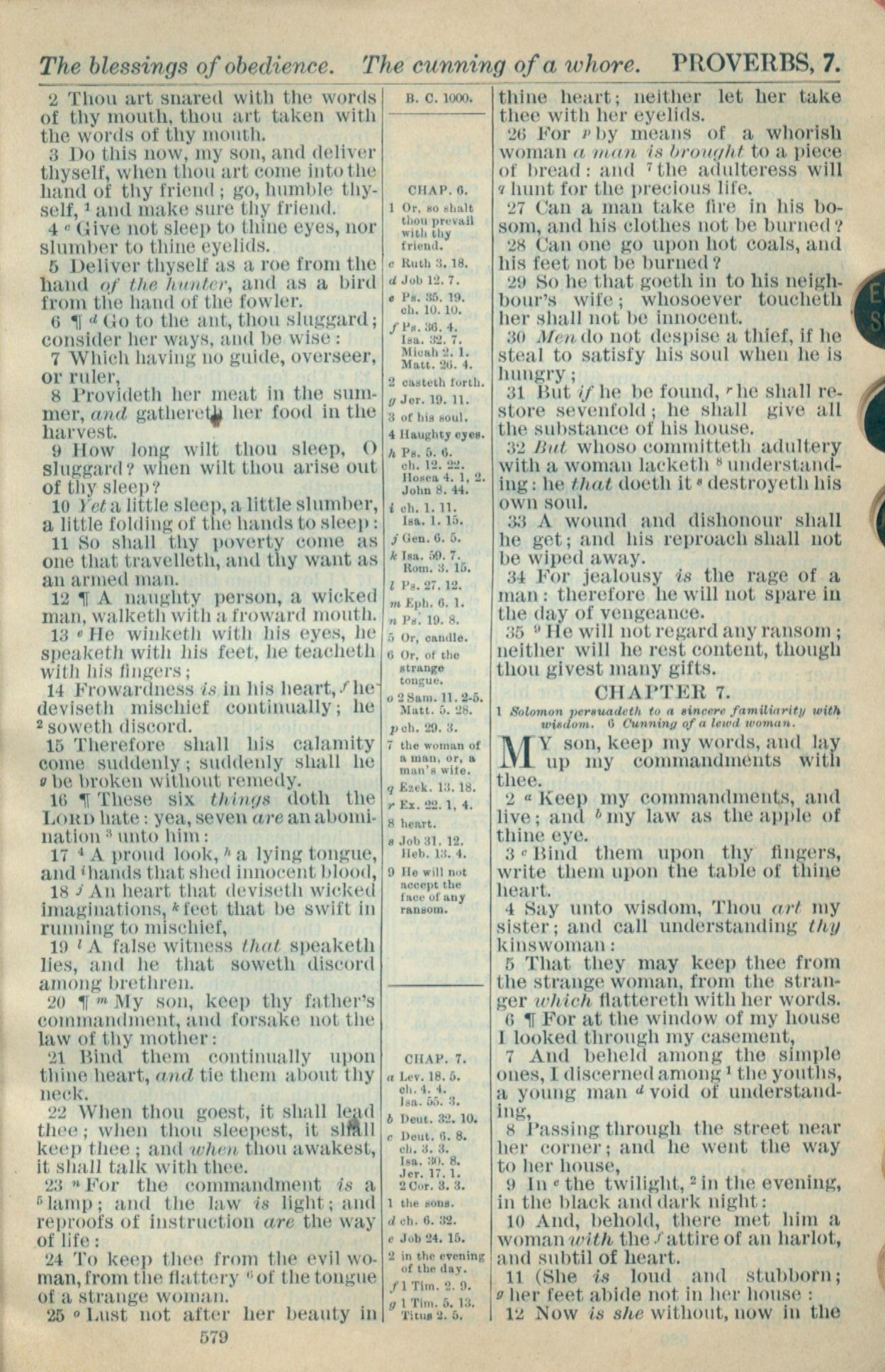 1916年Holy Bible 箴言 6 章 2 节到 7 章 12 节