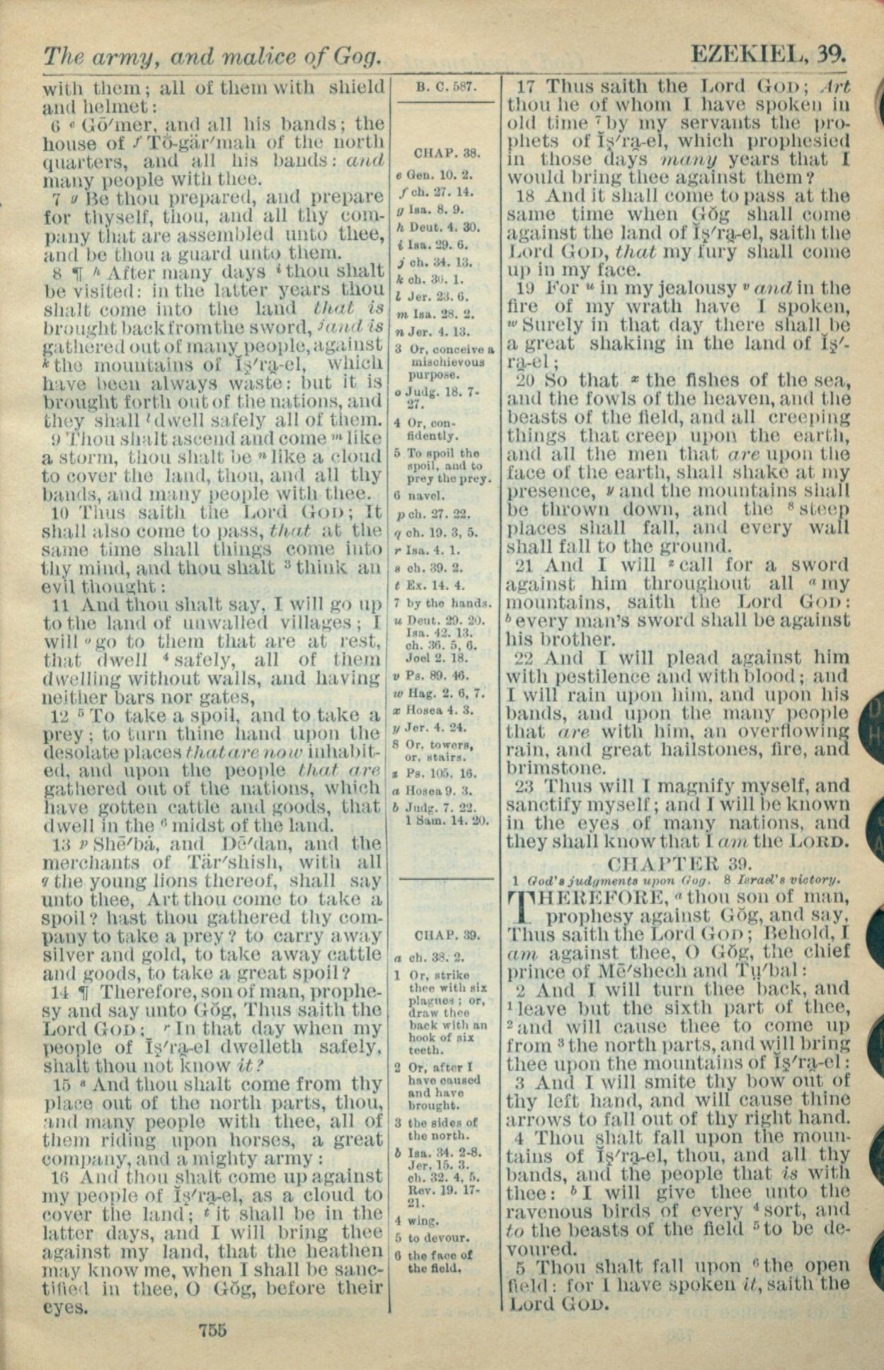 1916年Holy Bible 以西结书 38 章 6 节到 39 章 5 节