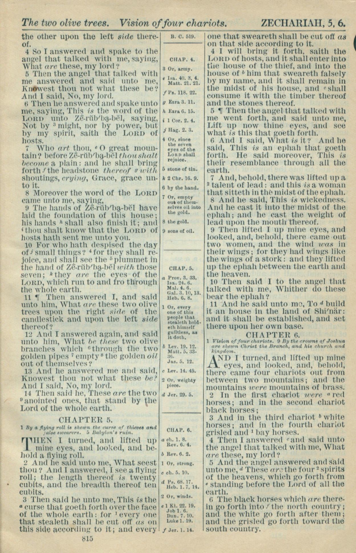 1916年Holy Bible 撒迦利亚书 4 章 4 节到 6 章 6 节
