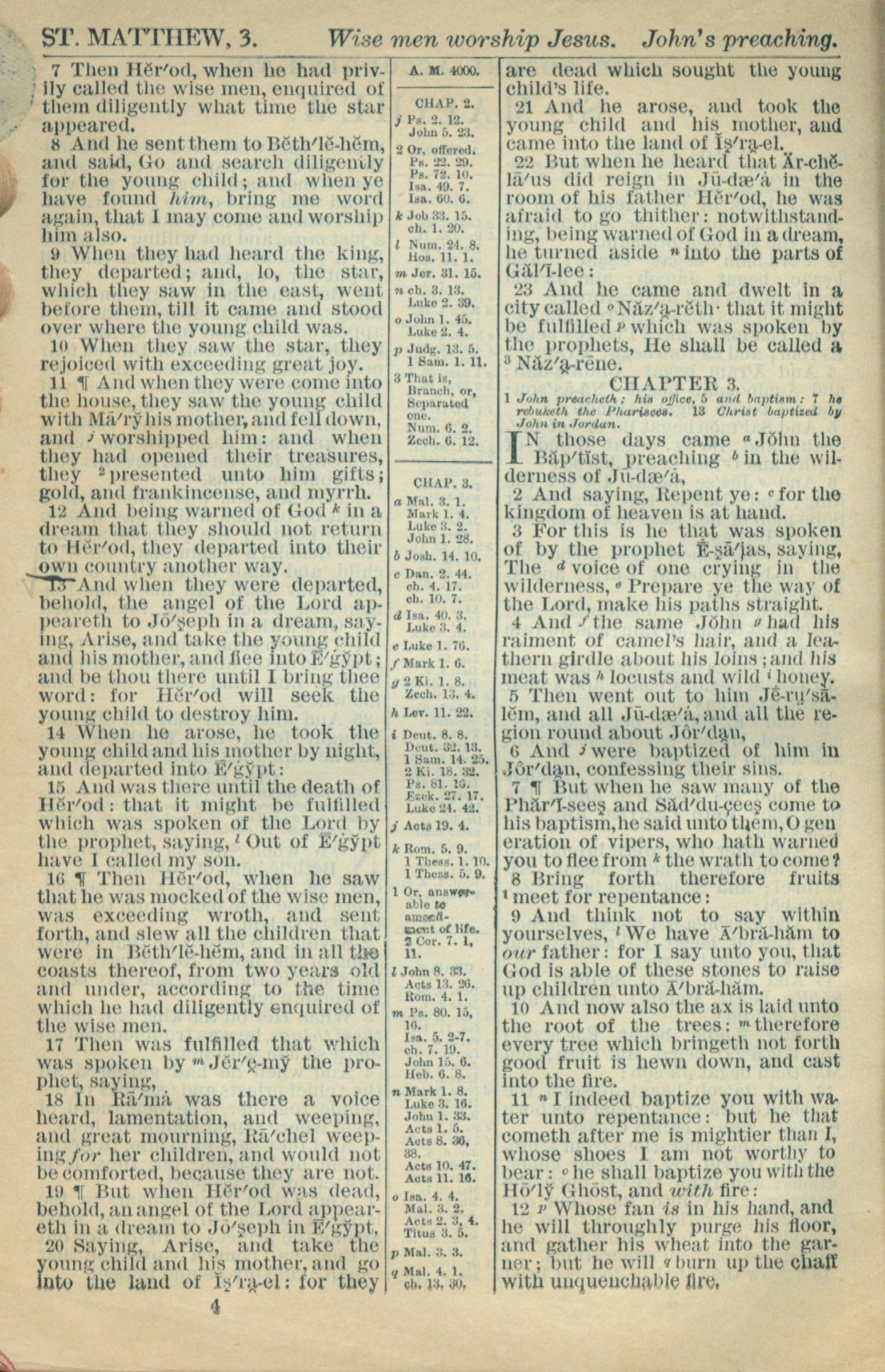 1916年Holy Bible 马太福音 2 章 7 节到 3 章 12 节