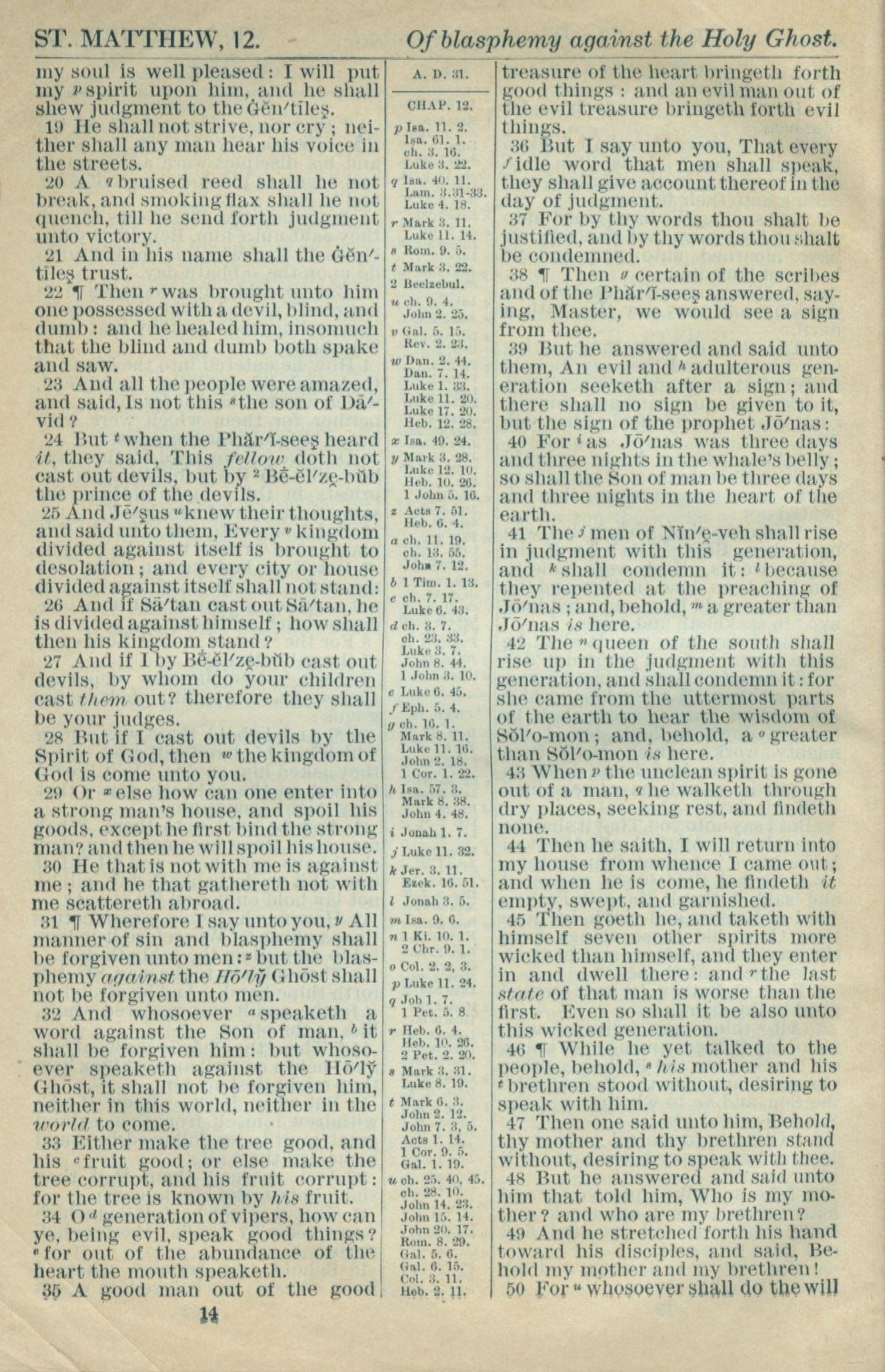 1916年Holy Bible 马太福音 12 章 19 节到 12 章 50 节