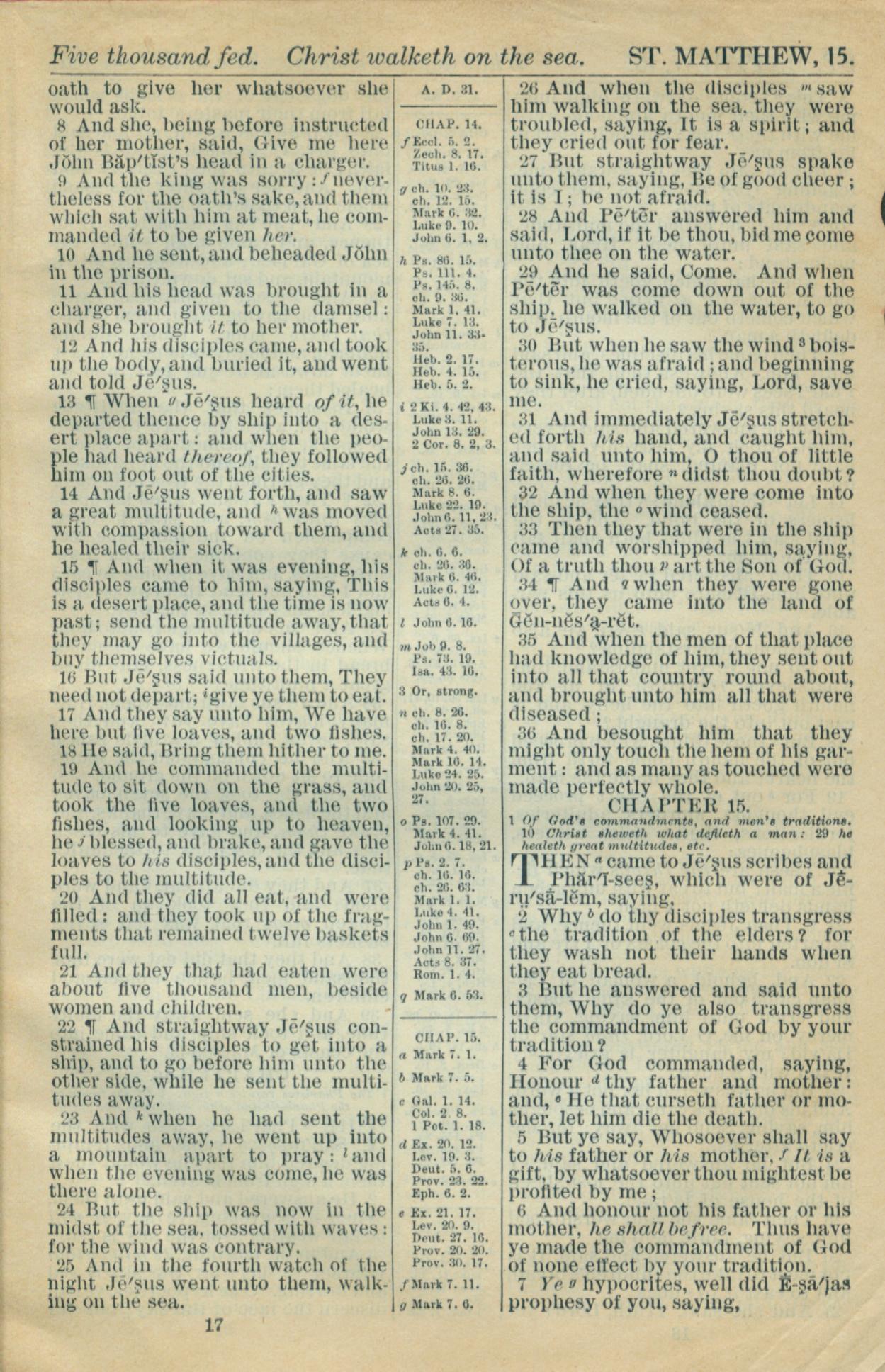 1916年Holy Bible 马太福音 14 章 8 节到 15 章 7 节