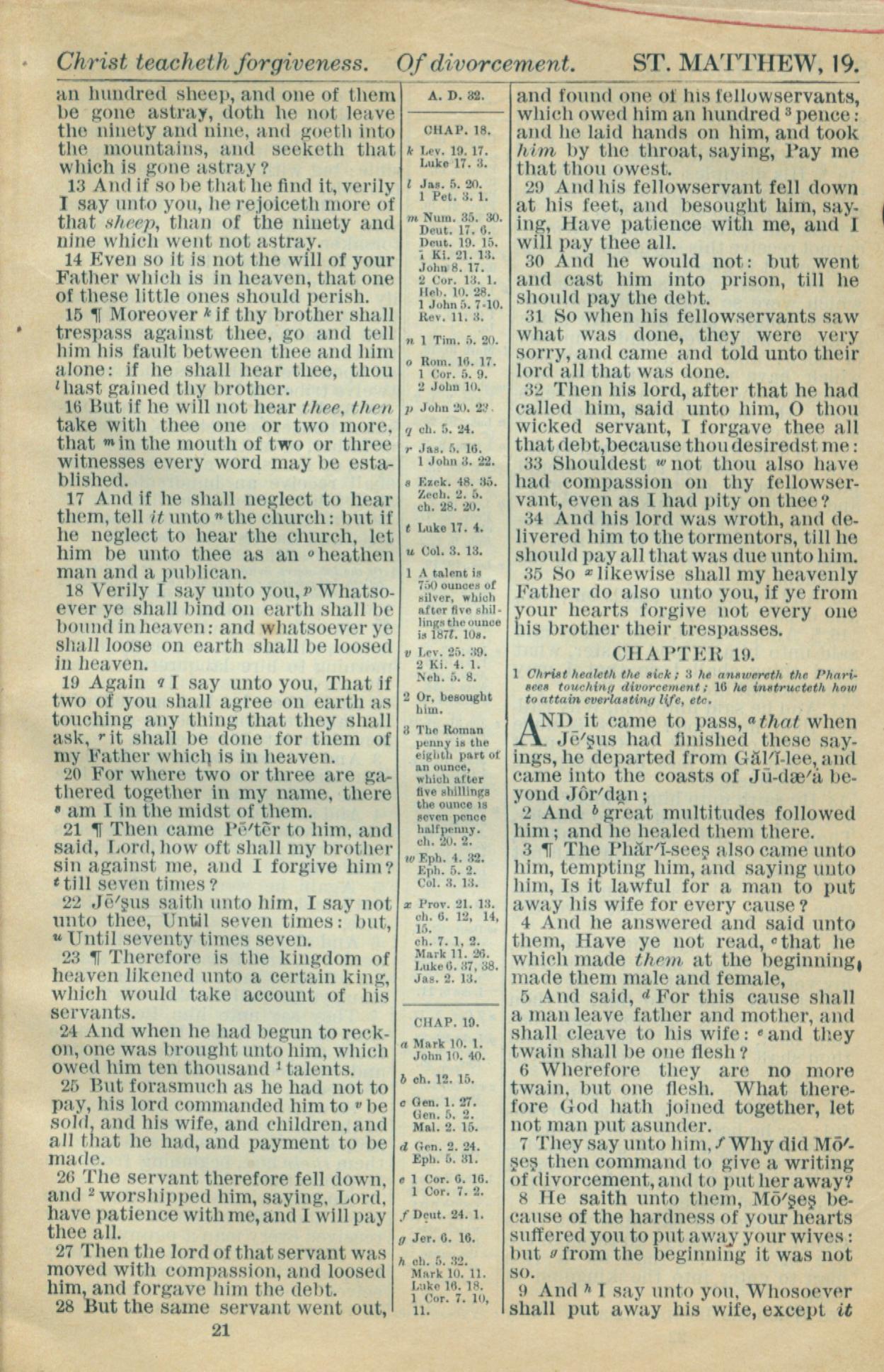 1916年Holy Bible 马太福音 18 章 13 节到 19 章 9 节