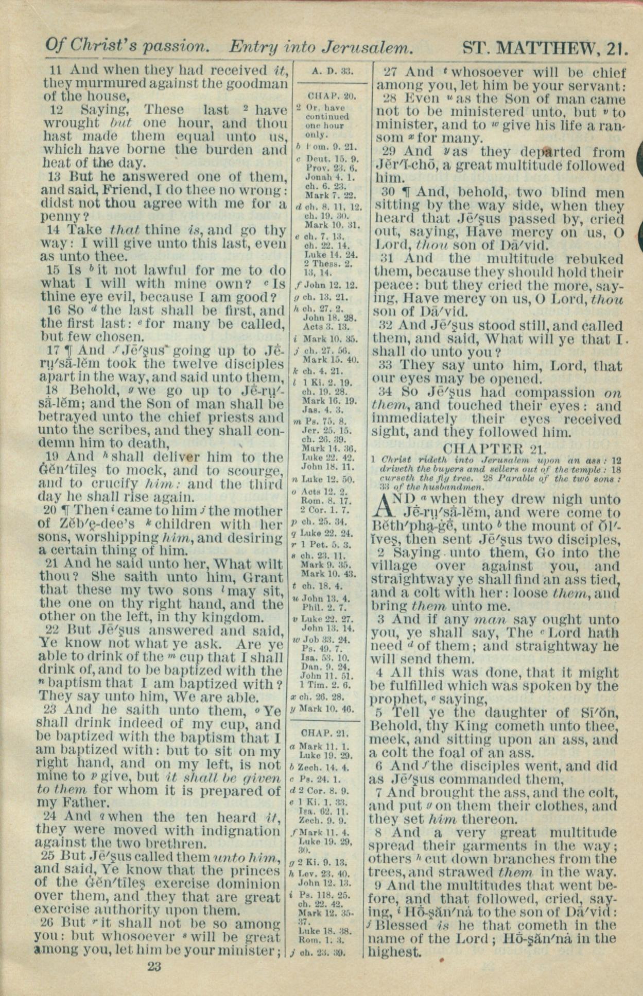 1916年Holy Bible 马太福音 20 章 11 节到 21 章 9 节