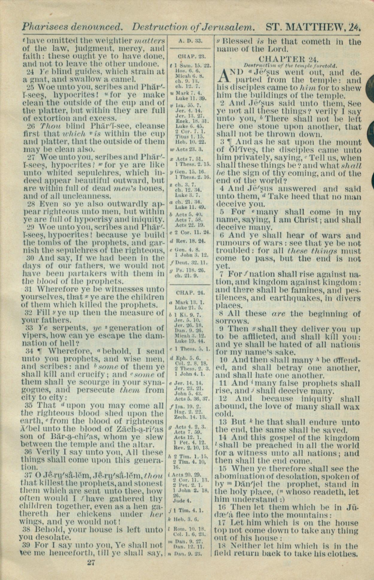 1916年Holy Bible 马太福音 23 章 24 节到 24 章 18 节