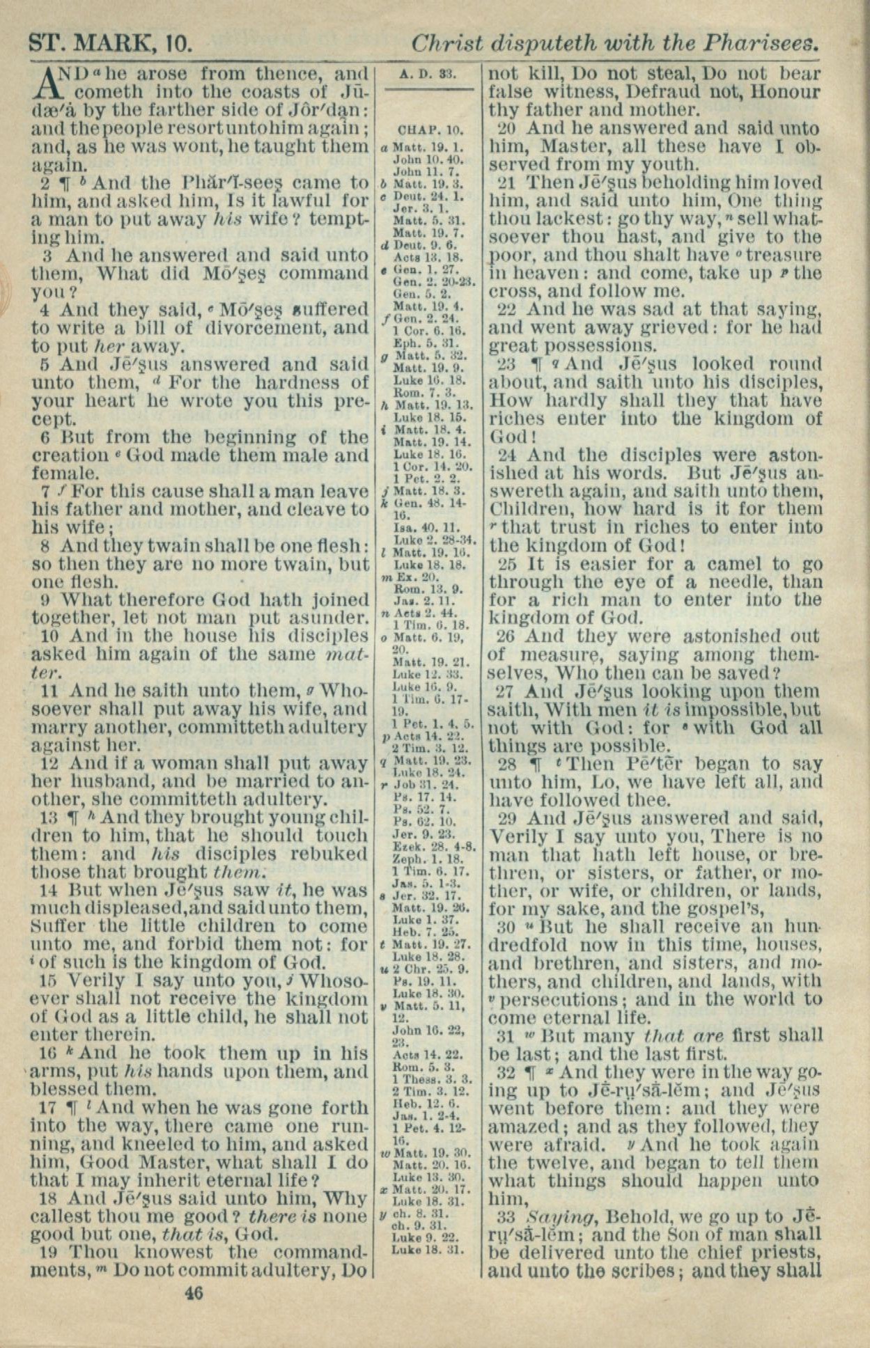 1916年Holy Bible 马可福音 10 章 1 节到 10 章 33 节