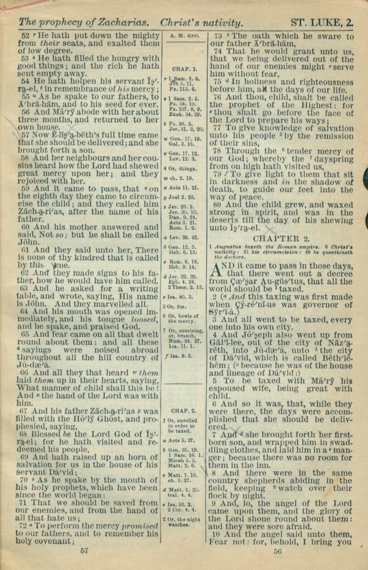 1916年Holy Bible 路加福音 1 章 52 节到 2 章 10 节