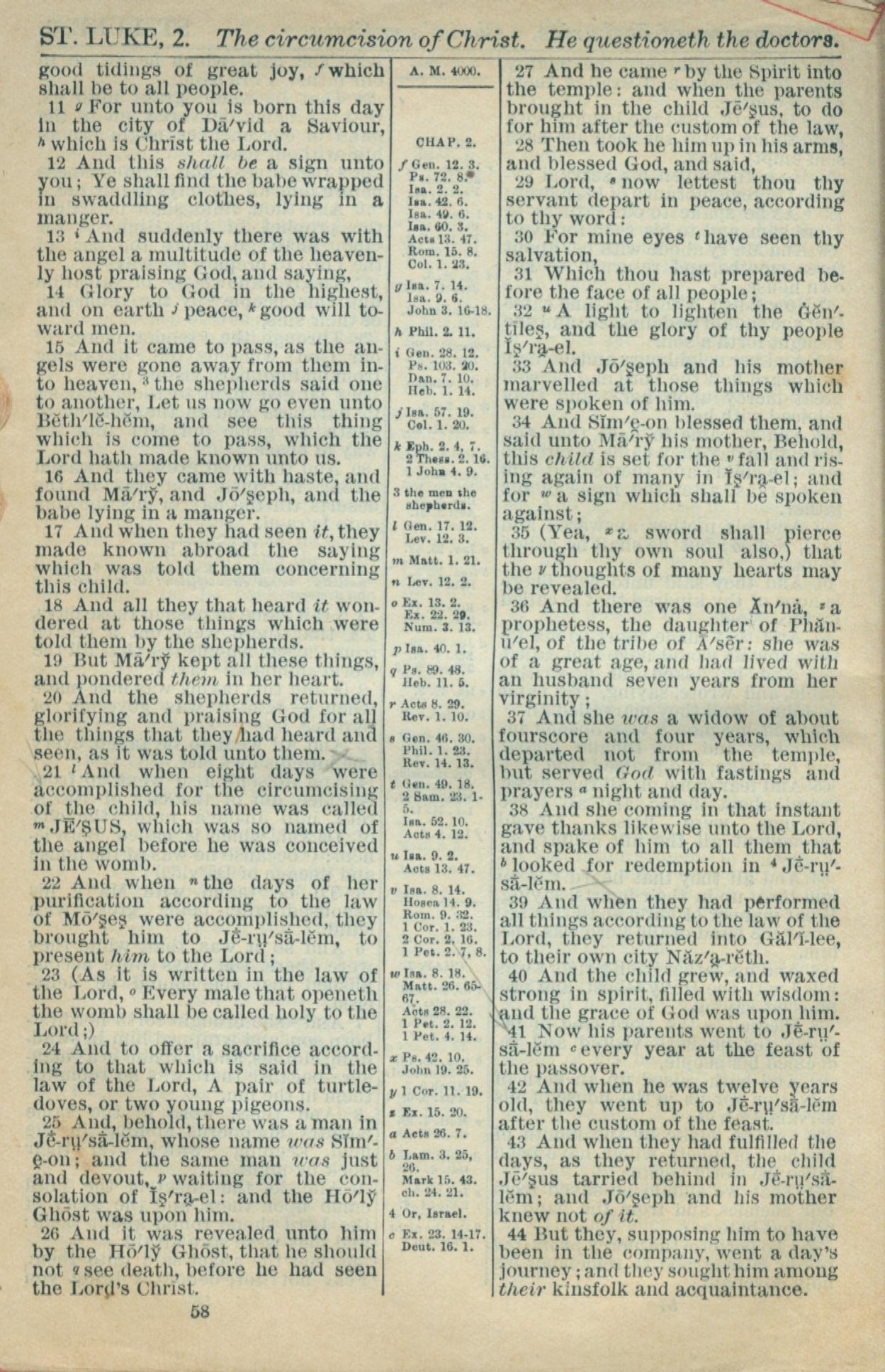 1916年Holy Bible 路加福音 2 章 11 节到 2 章 44 节