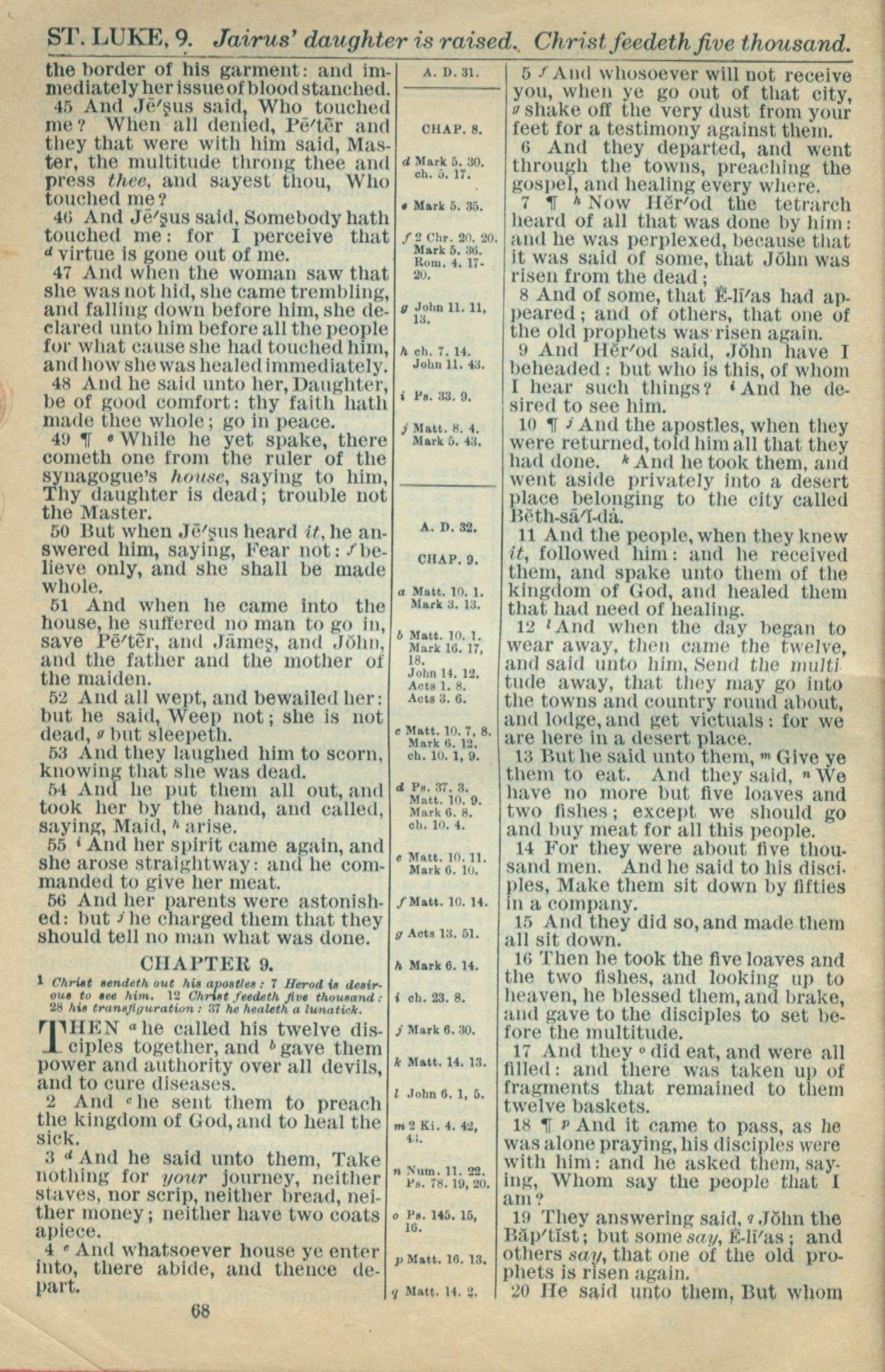 1916年Holy Bible 路加福音 8 章 45 节到 9 章 20 节