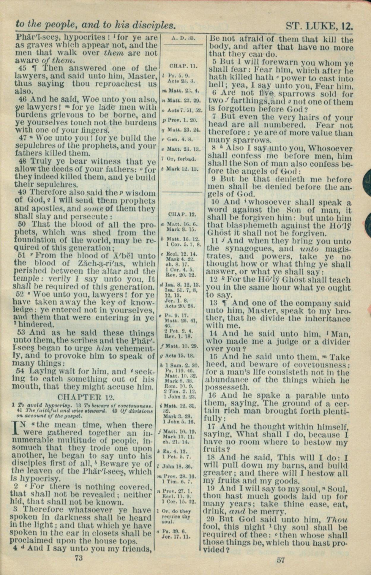 1916年Holy Bible 路加福音 11 章 45 节到 12 章 20 节