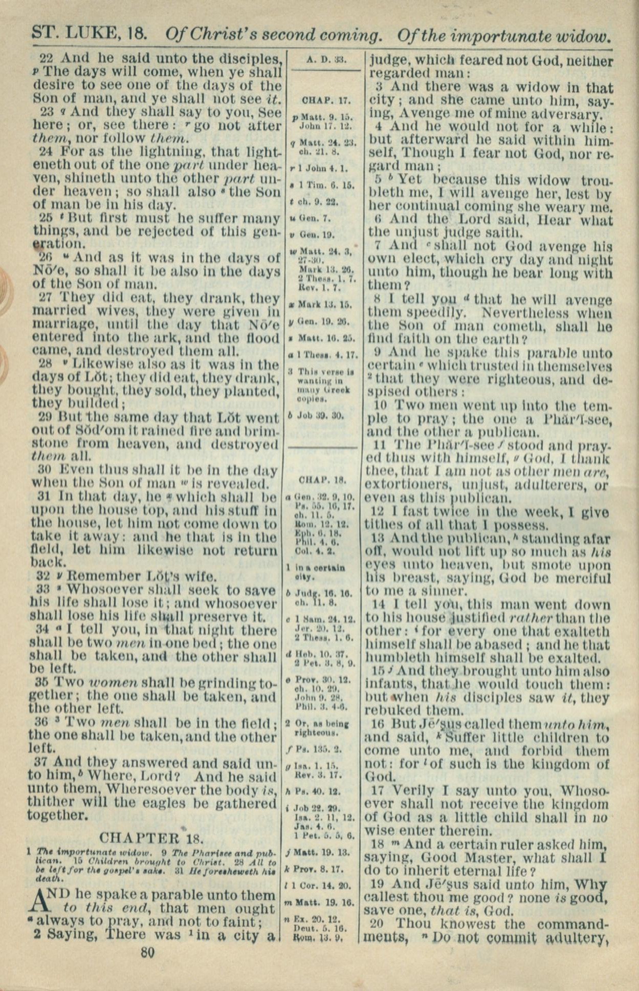 1916年Holy Bible 路加福音 17 章 22 节到 18 章 20 节