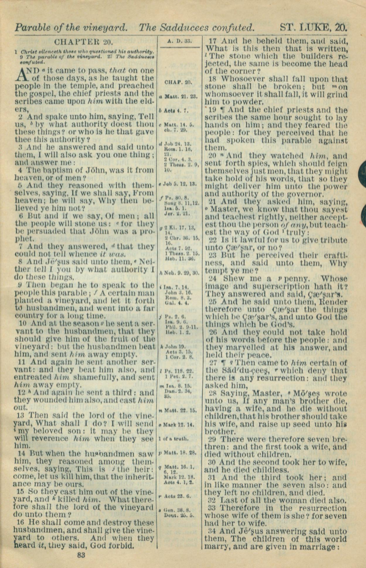 1916年Holy Bible 路加福音 20 章 1 节到 20 章 34 节
