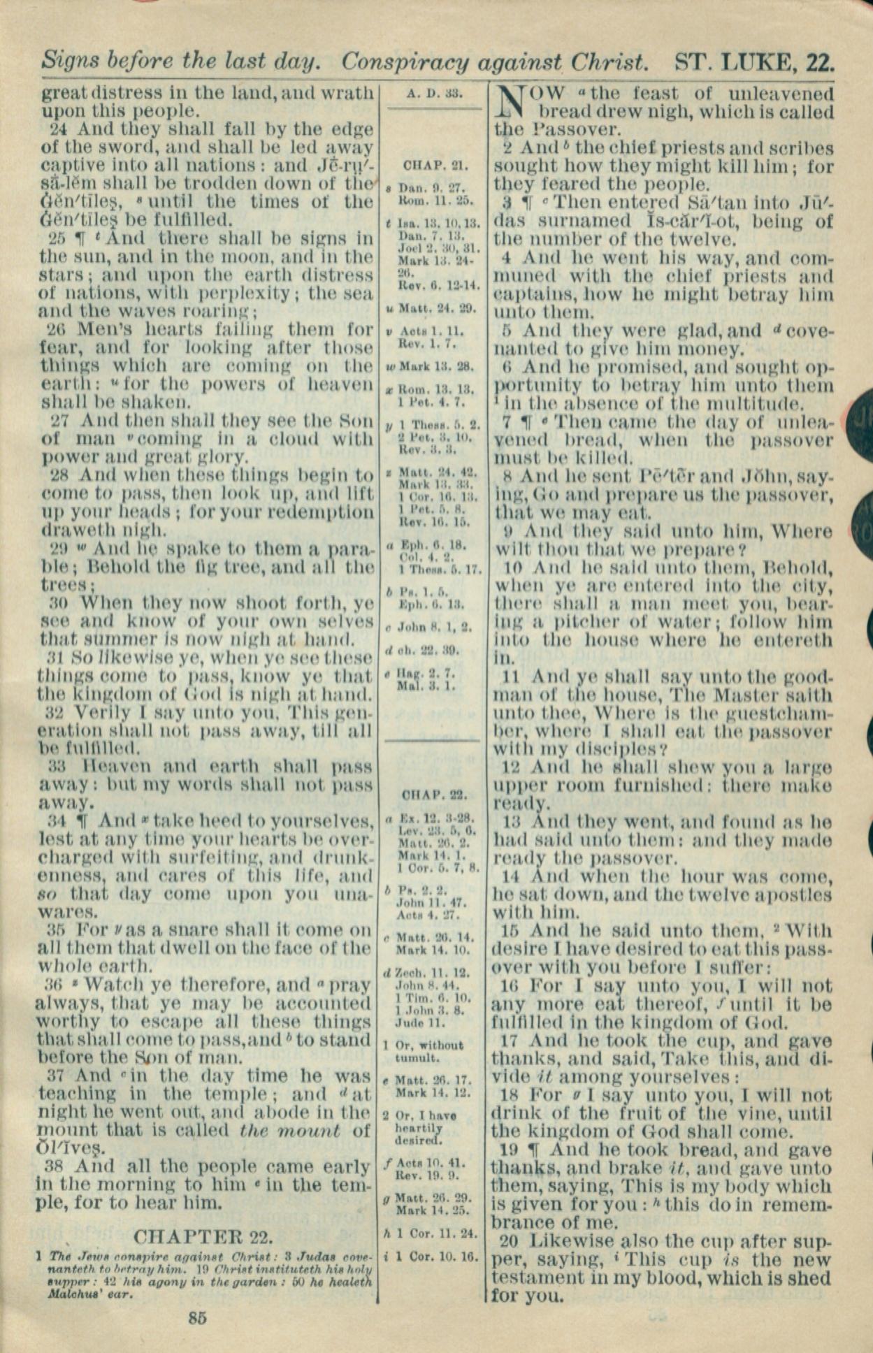 1916年Holy Bible 路加福音 21 章 24 节到 22 章 20 节