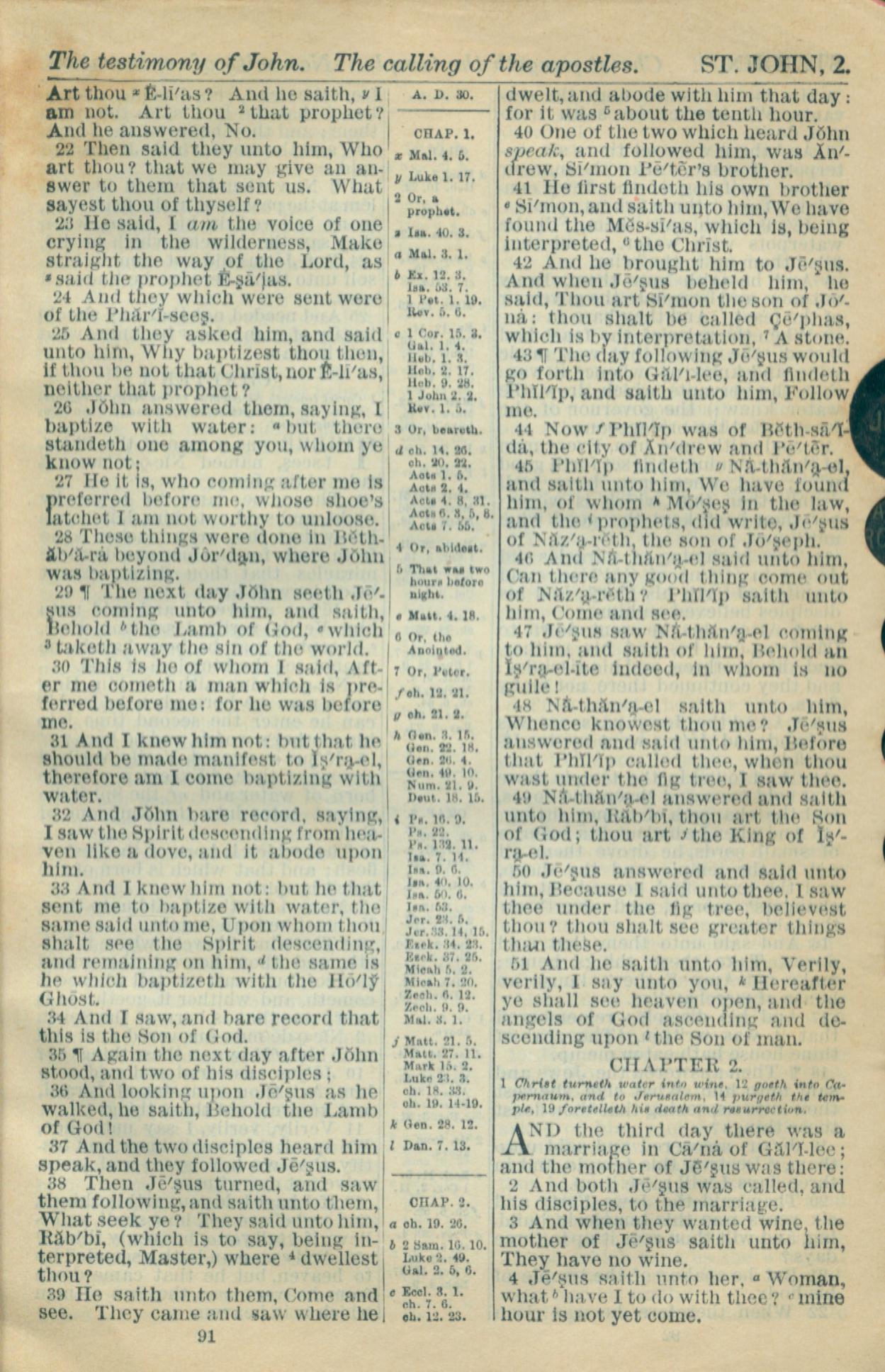 1916年Holy Bible 约翰福音 1 章 22 节到 2 章 4 节