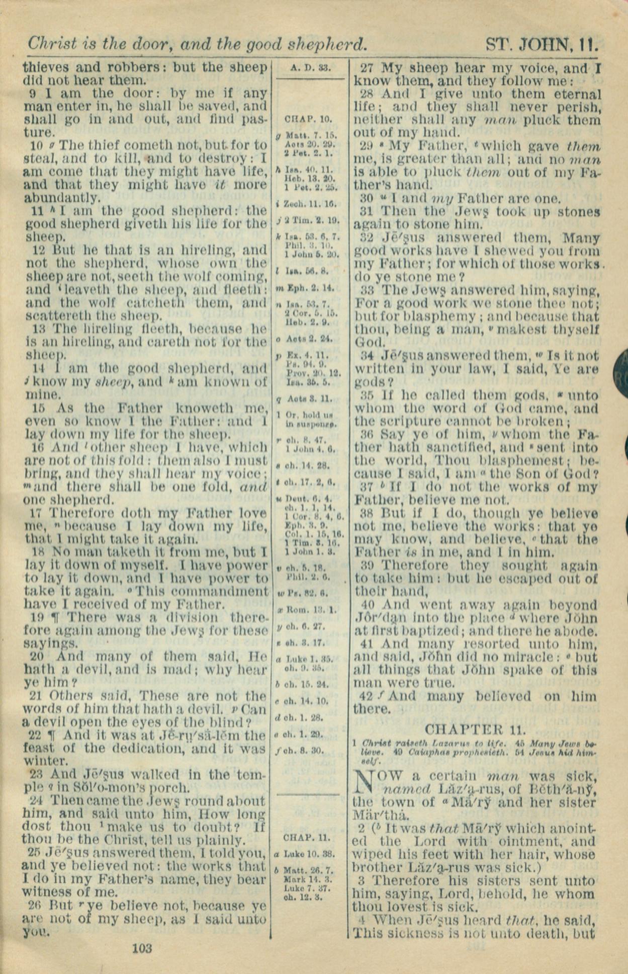 1916年Holy Bible 约翰福音 10 章 9 节到 11 章 4 节