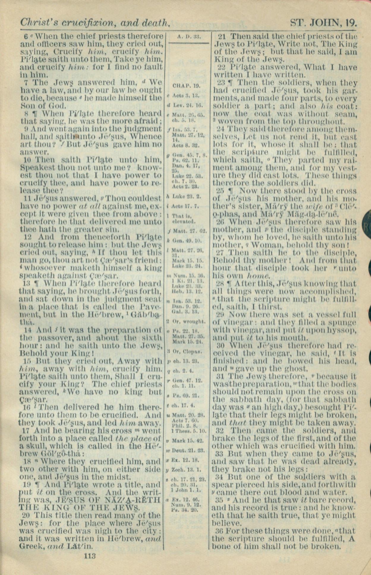 1916年Holy Bible 约翰福音 19 章 6 节到 19 章 36 节