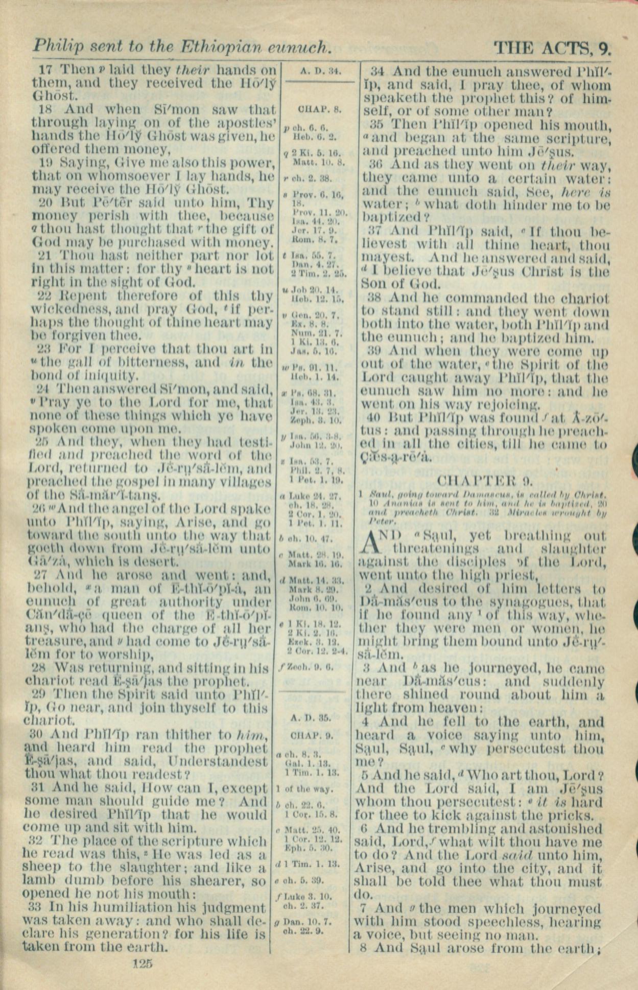1916年Holy Bible 使徒行传 8 章 17 节到 9 章 8 节