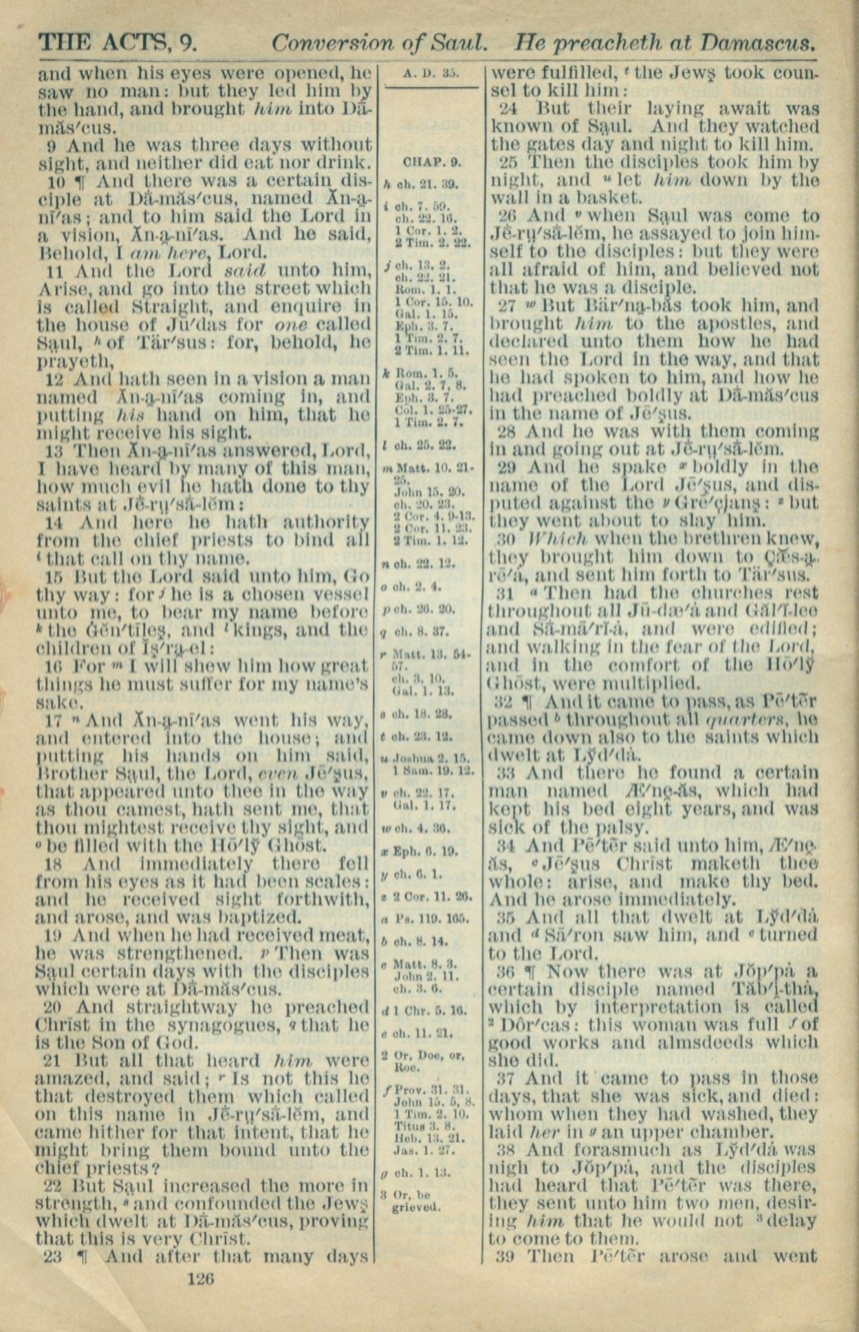 1916年Holy Bible 使徒行传 9 章 9 节到 9 章 39 节