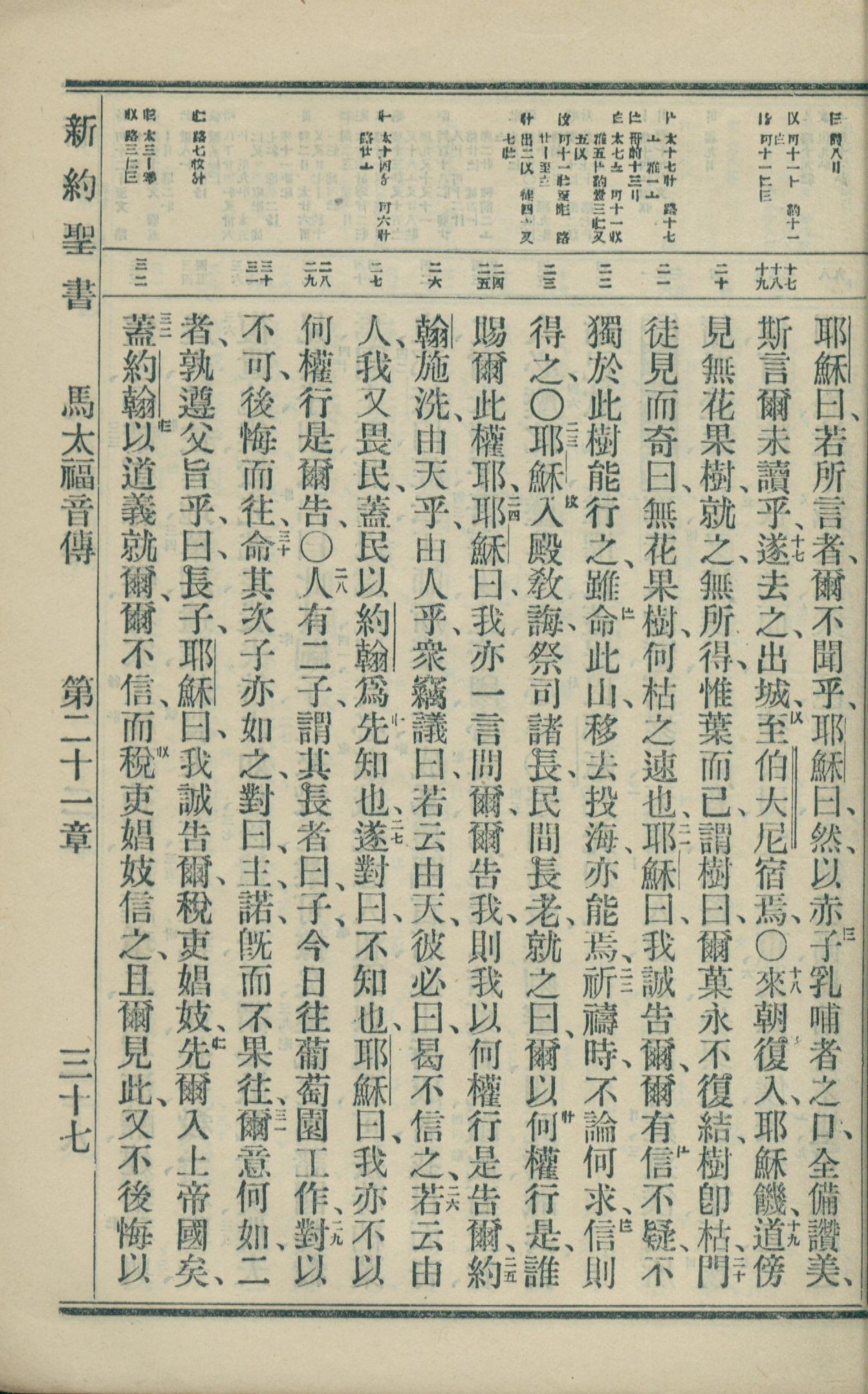 1918年新约全书(文理委办译本串珠版) 马太福音 21 章 16 节到 21 章 32 节