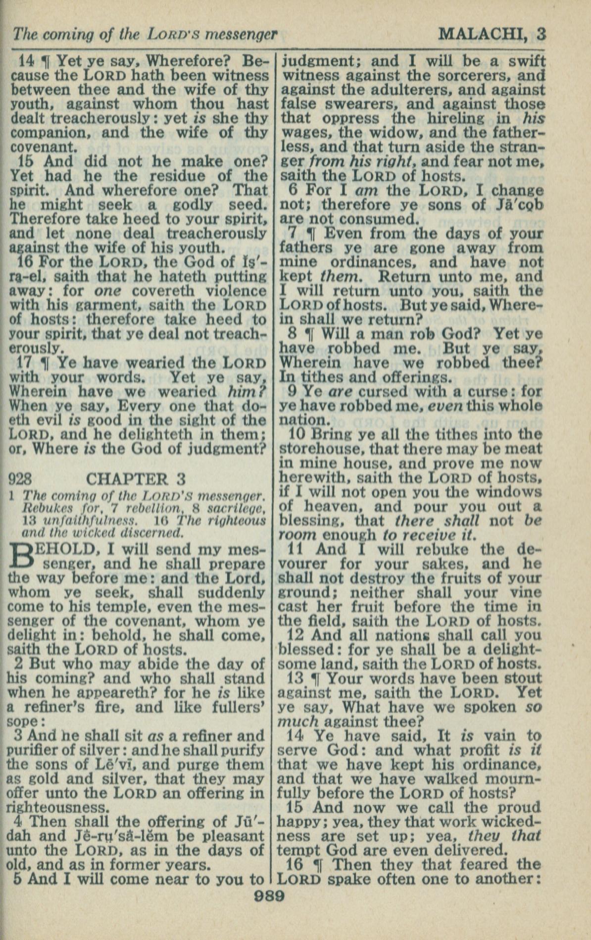 1946年King James Version 玛拉基书 2 章 14 节到 3 章 16 节
